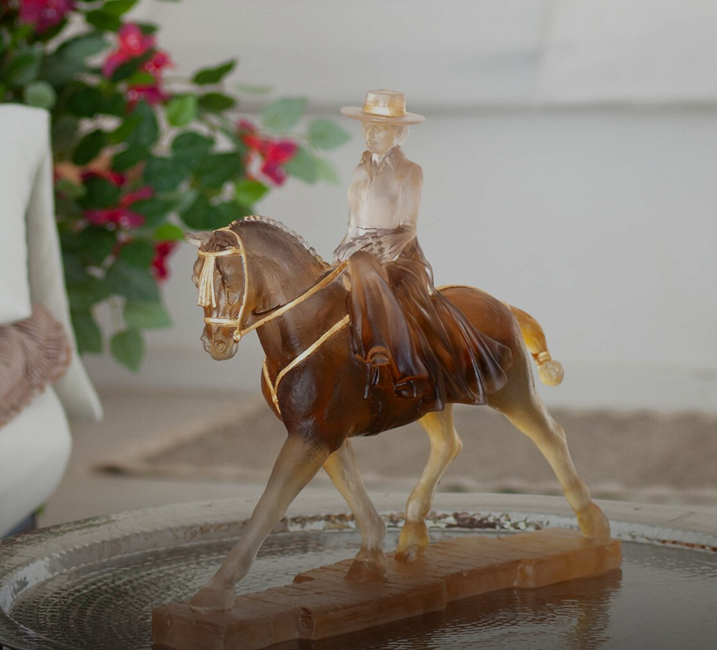 Depuis plus de 140 ans, la Maison Daum célèbre la beauté du monde à travers des collections où la lumière et la matière s’unissent dans un dialogue poétique. Inspirées par des univers féminins empreints de grâce, par la richesse infinie du règne floral et par la puissance symbolique de l’univers équestre, les créations Daum incarnent la sensibilité et l’excellence du savoir-faire français. Chaque œuvre, façonnée selon la technique de la pâte de cristal, témoigne d’un travail d’orfèvre où transparence, couleur et texture se mêlent avec virtuosité