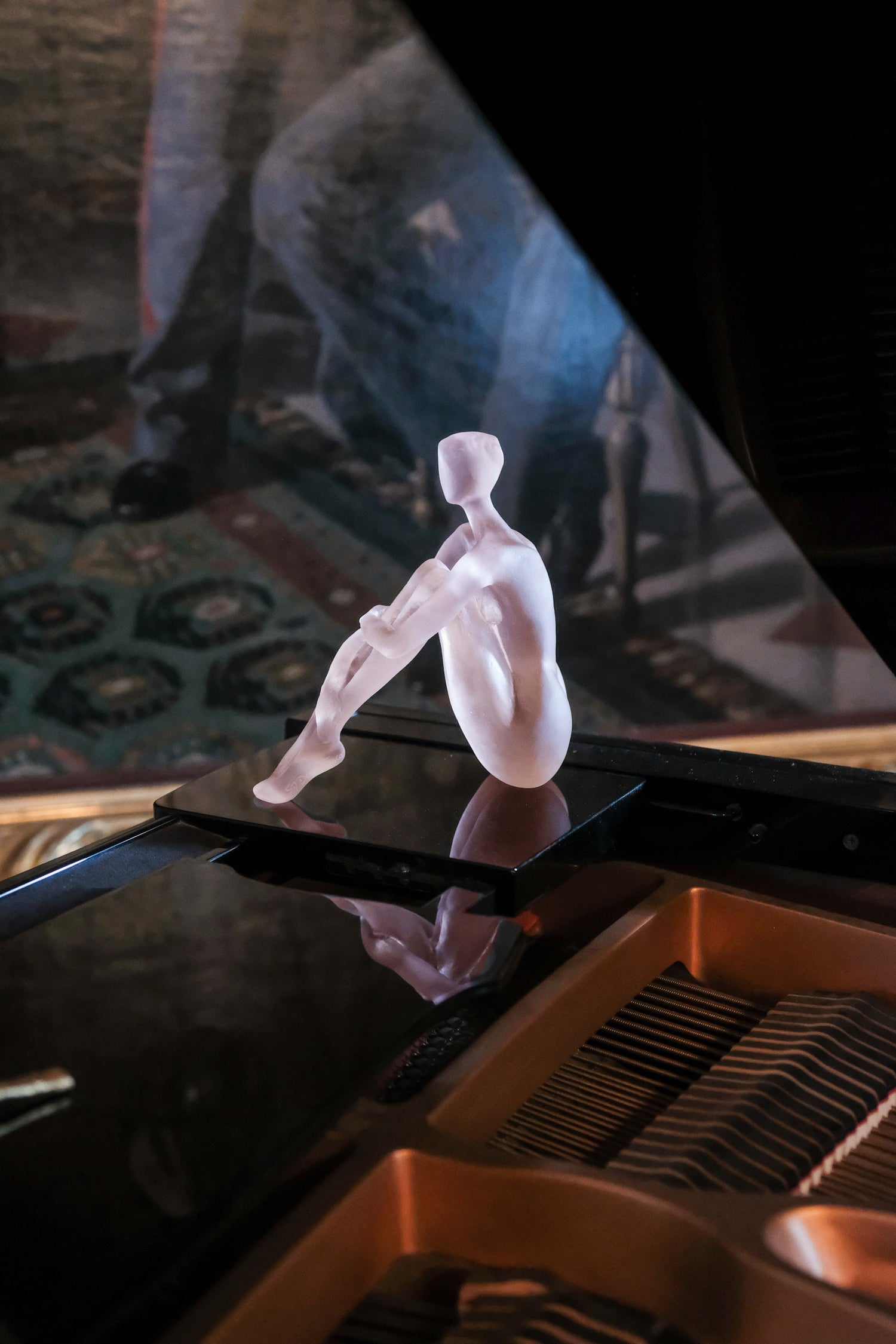 intérieure au fil des saisons. Placées dans un intérieur, ces sculptures en cristal créent de véritables points d’équilibre. Sur une console minimaliste, une silhouette pensive et sensible attire le regard comme une œuvre contemporaine. Dans une chambre, une sculpture aux nuances douces diffuse intimité et sérénité. Près d’une baie vitrée, les dégradés de couleurs se transforment au gré de la lumière du jour, inscrivant l’œuvre dans un dialogue vivant avec l’espace.