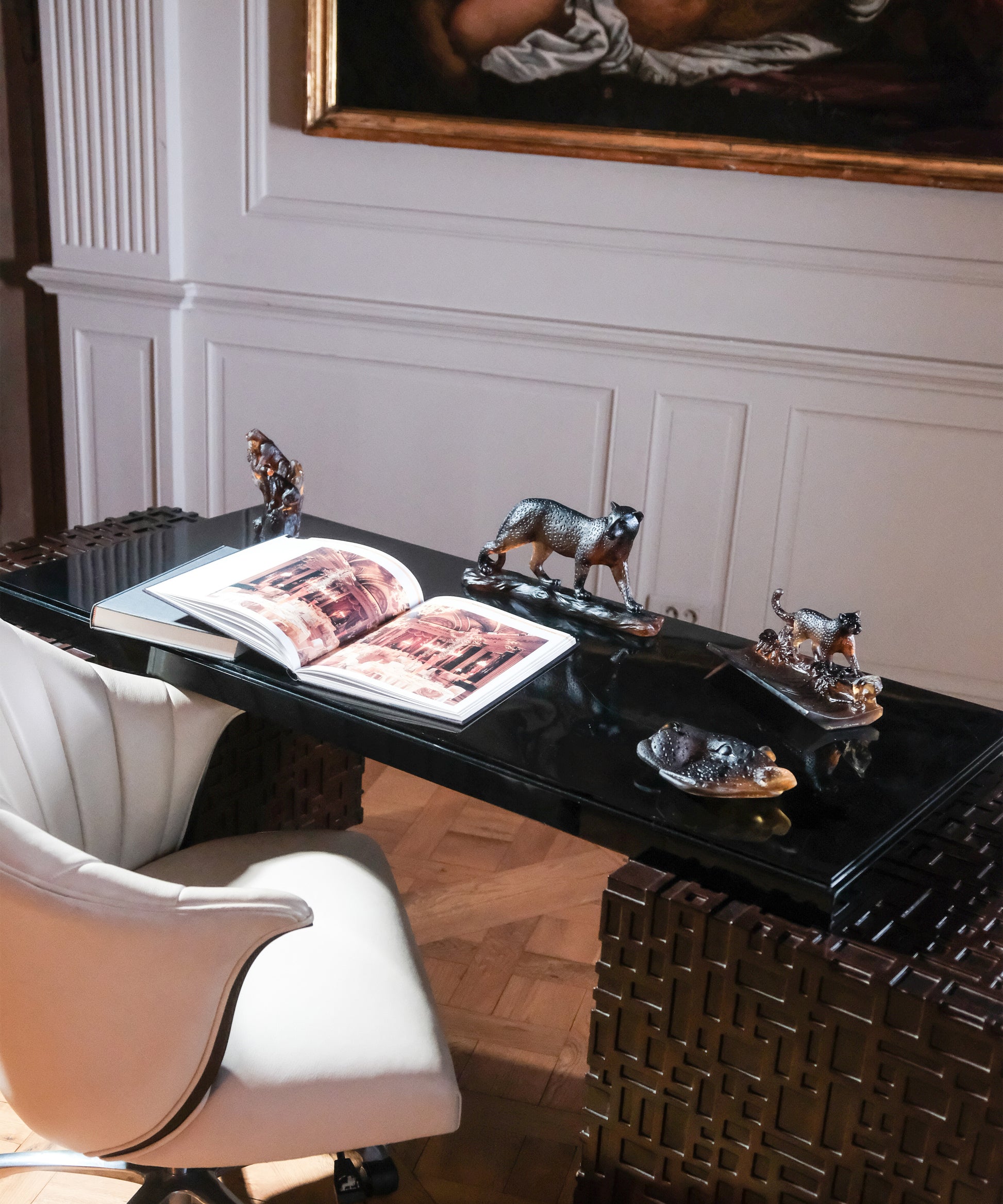 Prestige finishes: To remove dust from the gilded part of the piece, be very meticulous. Use a very soft, long-haired brush or a small compressed air canister. Do not use a cloth, dry or wet sponge, or feather duster.