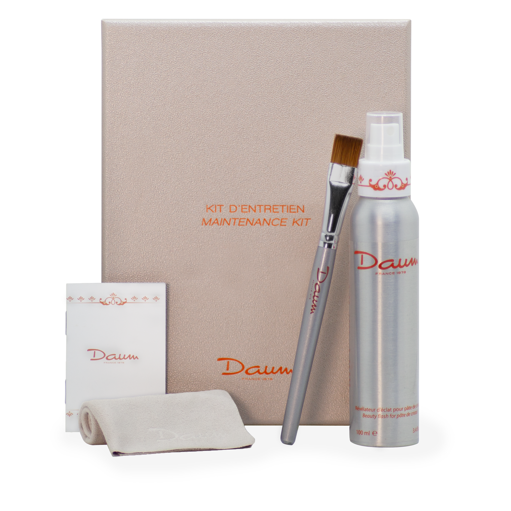 Daum care kit, a guarantee of care for your crystal works, preserves their beauty and brilliance.