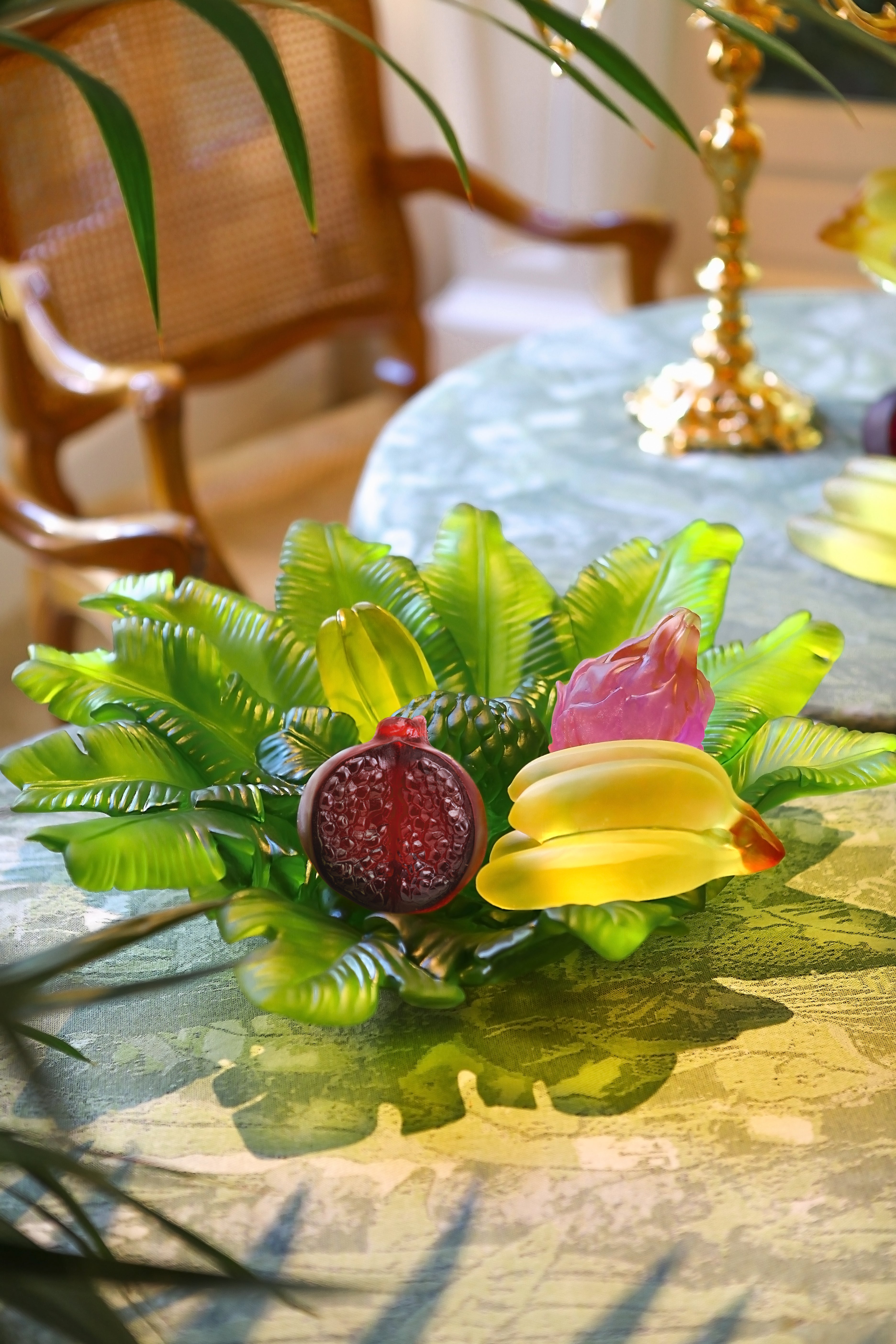 The pâte de verre technique is rare and very ancient. This technique dates back to 5000 BC (examples have been found in the tombs of pharaohs). Long forgotten, it was rediscovered by Daum in 1900 and then reworked in 1968. The process is extremely delicate to handle. The pieces obtained by this fusion of pieces of crystal mixed in a mold possess a grain, a texture, and a softness of contours that cannot be obtained with blown glass.