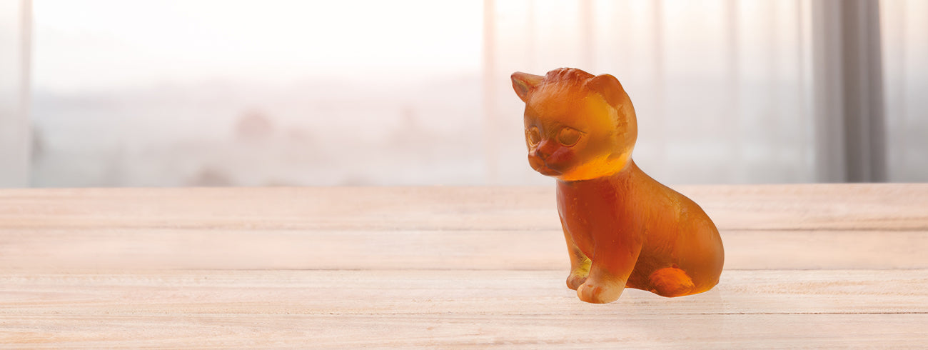 In this dedicated collection, each sculpture reveals feline beauty through the magic of pâte de verre, the Maison's emblematic material. Delicate nuances, plays of transparency, and color gradients capture natural light to bring to life unique pieces imbued with poetry and elegance.
