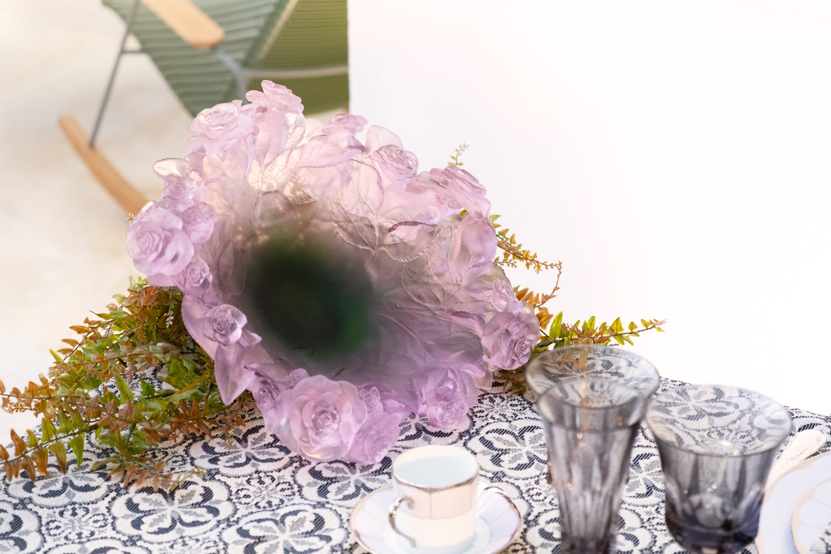It was in 1893, with the emergence of Art Nouveau, that Daum deeply incorporated nature into its artistic approach. Just a decade later, in 1902, the crystalworks developed a technique using oxides and mineral salts fused into the glass paste, which allowed for coloring the material. This revolutionary method enabled Daum to enhance its creations by giving them delicate reflections, sublimated by the sun's rays. As early as 1905, the Manufacture created its first collection entirely dedicated to roses. The flower gradually became an emblematic figure in the Daum catalog, just like camellias a few years later, or, in another field, horses. The Roses line that we are presenting today has existed since 1999 and continues to be revisited by our artists. It includes vases, bowls, dishes, candle holders, and trinket trays with delicate shapes, perfectly imitating the petals of these subtle and refined flowers. In 2012, the Rose Passion collection reinvented this iconic line, modernizing it while preserving its timeless charm. The pieces in this collection are adorned with complex and dreamlike hues, such as the violet-blue gradient used for the "ultraviolet" models or the pink-green gradient found on bowls and vases. These exceptional colors capture the light, allowing the beauty of the crystal corollas to blossom. Each relief evokes the fragility of the original flower, while simultaneously enhancing its mysterious forms, which seem to conceal a wondrous secret.