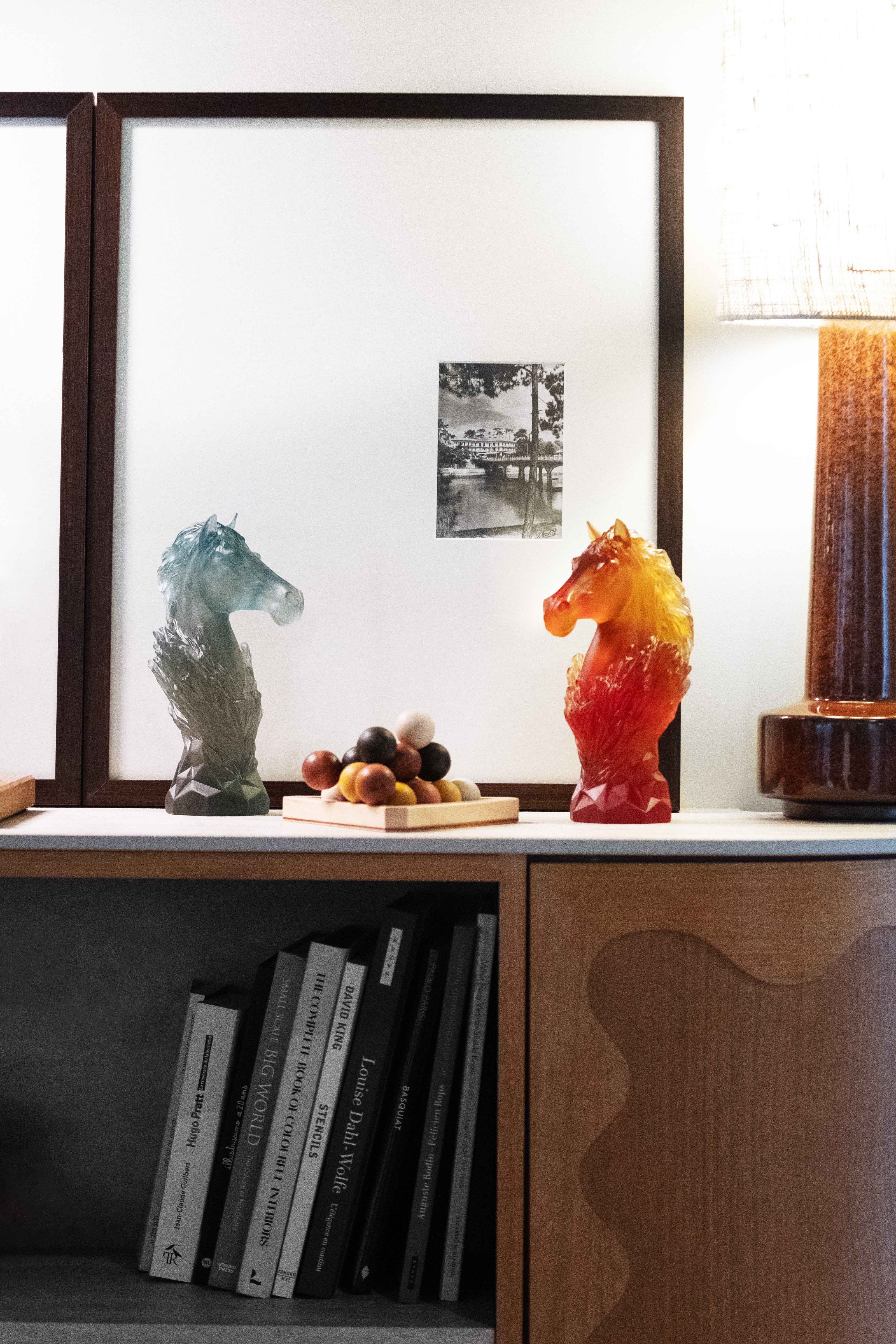 Placed in an interior, these works become strong visual focal points. On a dark wood console, a panther embodies contained power, while in the center of a coffee table, a blue dolphin creates a luminous focal point that instantly attracts the eye. In a modern bookcase, a stylized horse stands out among the books as an artistic nod, and in an elegant entrance, an amber elephant establishes an atmosphere of prestige from the first step taken.
