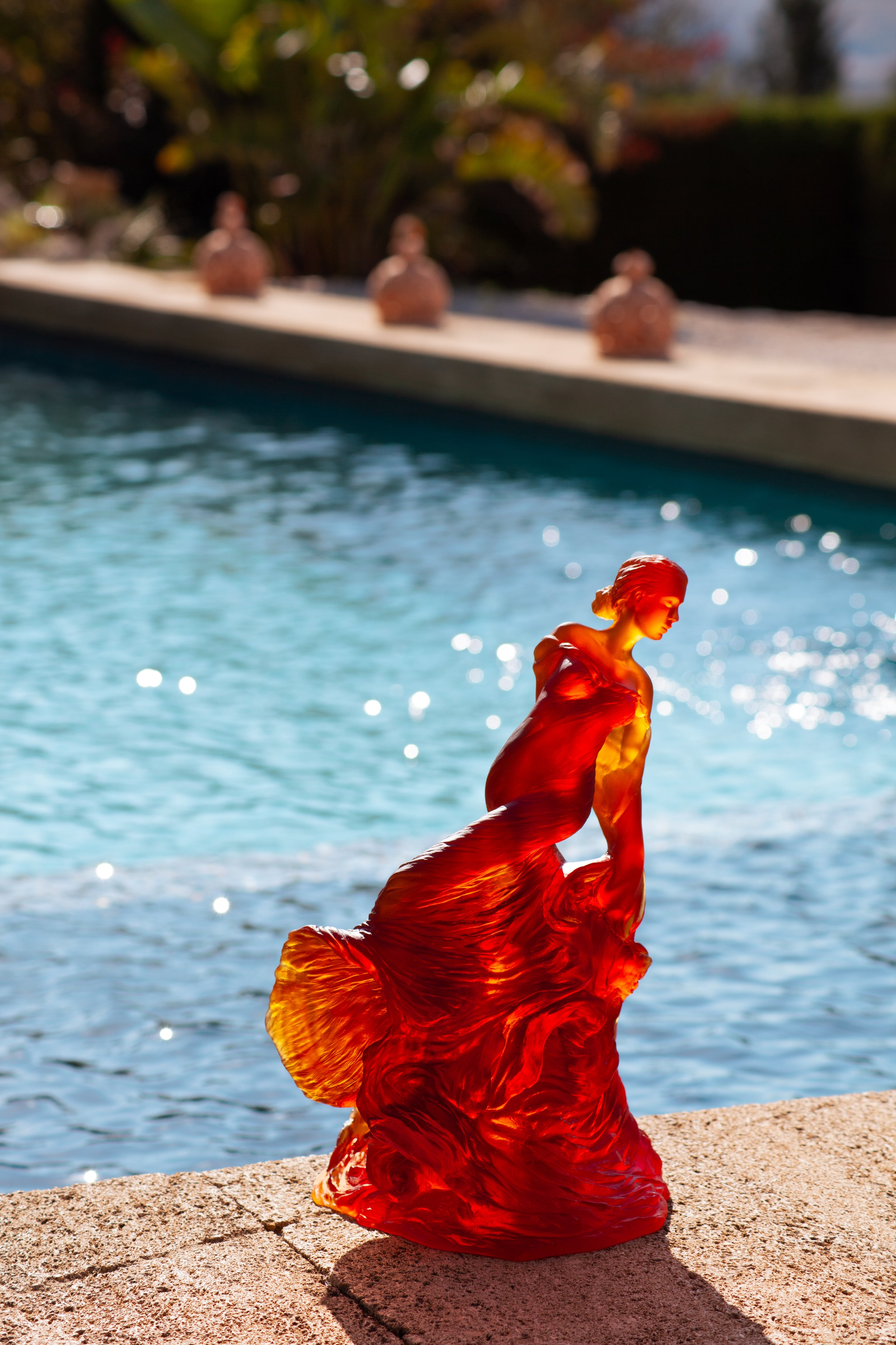 Daum's feminine sculptures embody a beauty in perpetual metamorphosis, mirroring nature's changing seasons. In spring, rosy or tender green hues evoke the awakening of spring, a symbol of renewal and vitality. In summer, amber silhouettes are adorned with a solar intensity, diffusing warmth and brilliance in a bright living room. Autumn is reflected in golden and fawn shades, recalling the softness of a comforting golden light. Finally, winter reveals the power of deep blues and icy violets, creating an atmosphere of calm and contemplation.