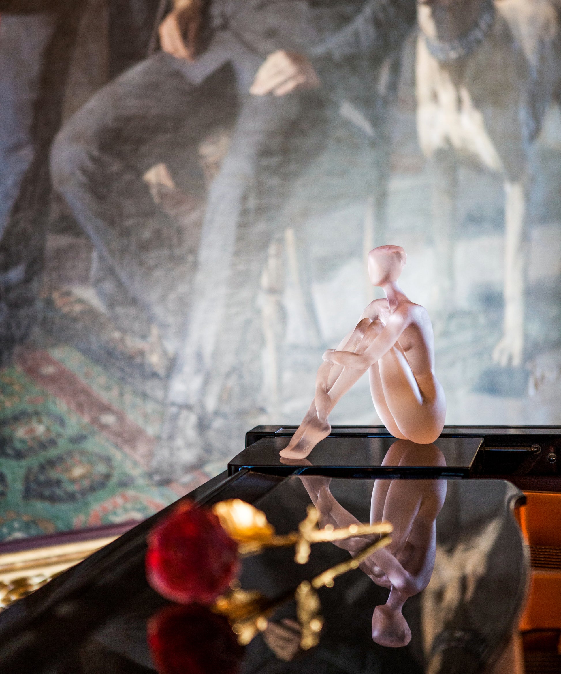 Prestige finishes: To remove dust from the gilded part of the piece, be very meticulous. Use a very soft, long-haired brush or a small compressed air canister. Do not use a cloth, dry or wet sponge, or feather duster.