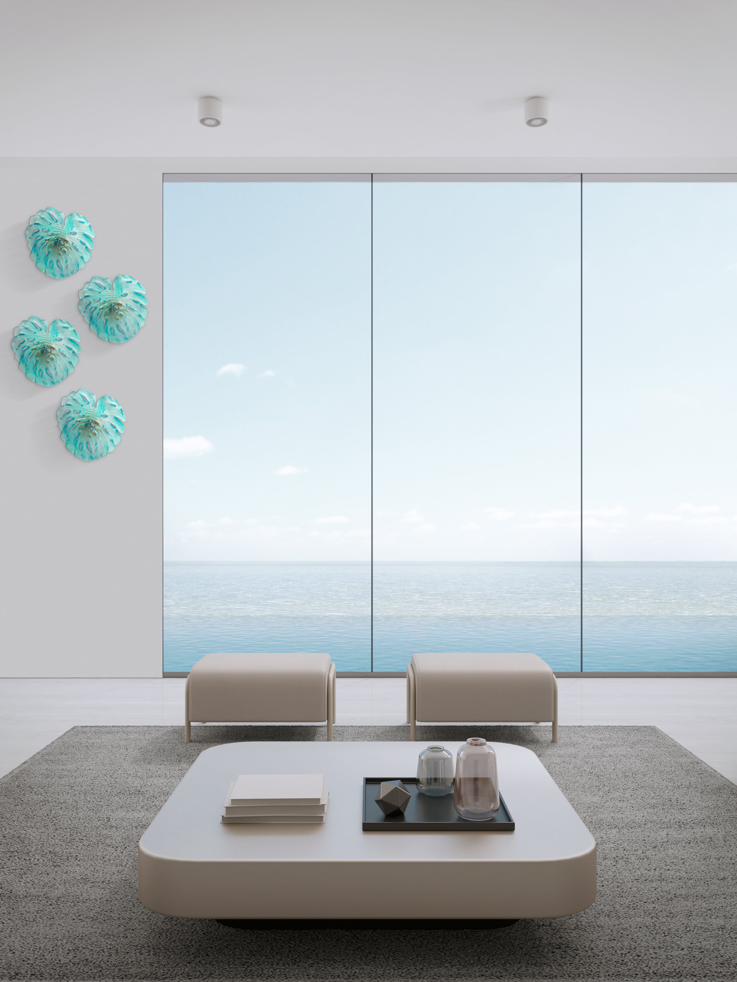 Grâce à la richesse des nuances et aux jeux d’ombres et de reflets, ces créations murales deviennent des présences vivantes, capables de magnifier un intérieur et de souligner son caractère. Leur fixation discrète permet une mise en scène raffinée, propice à créer des compositions uniques et immersives. Éditées en séries numérotées et façonnées à la main dans les ateliers de Nancy, les appliques Daum témoignent d’un savoir-faire rare. Elles incarnent l’harmonie parfaite entre art, lumière et nature, et apportent à chaque espace une dimension sculpturale et intemporelle.