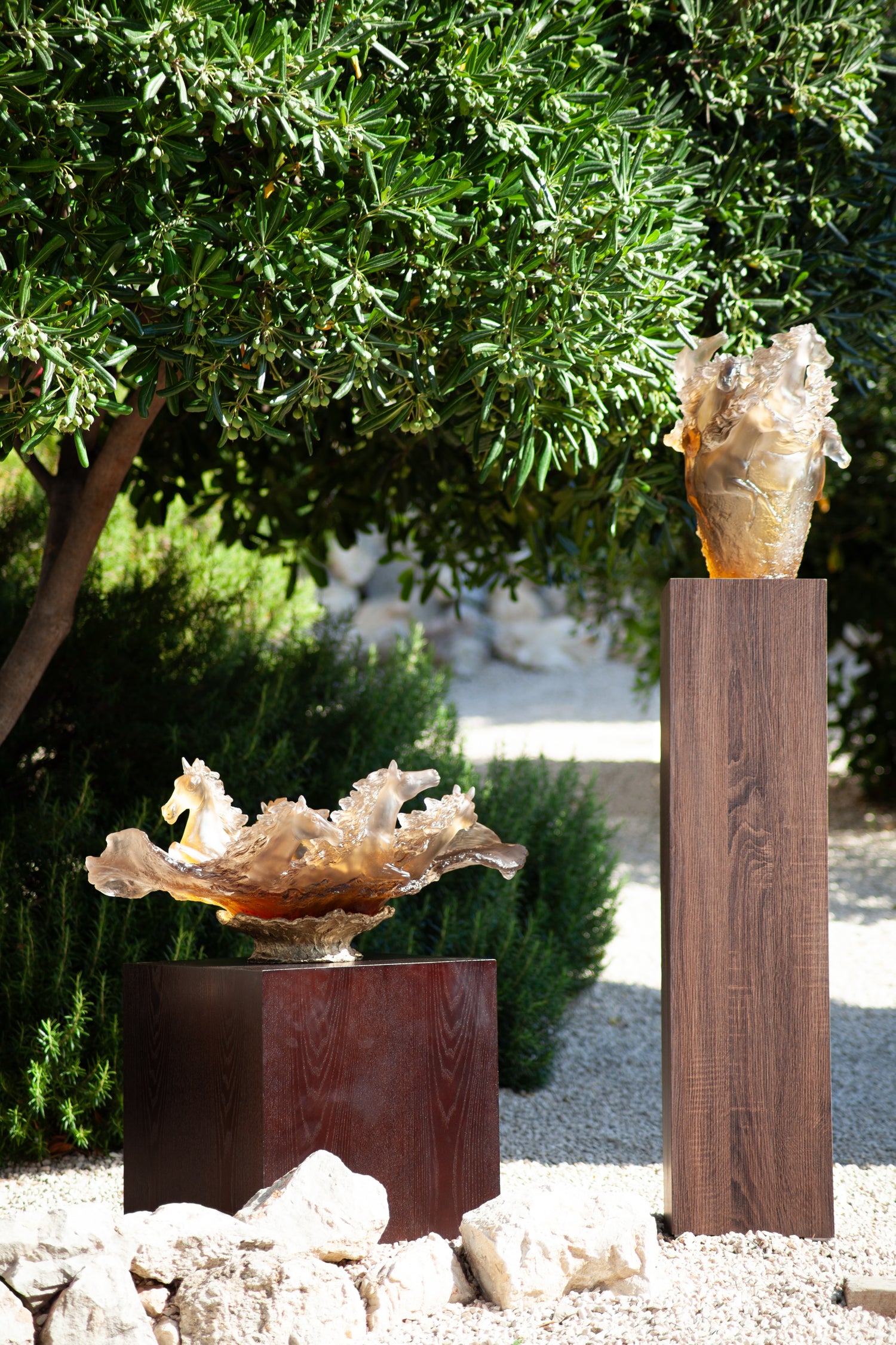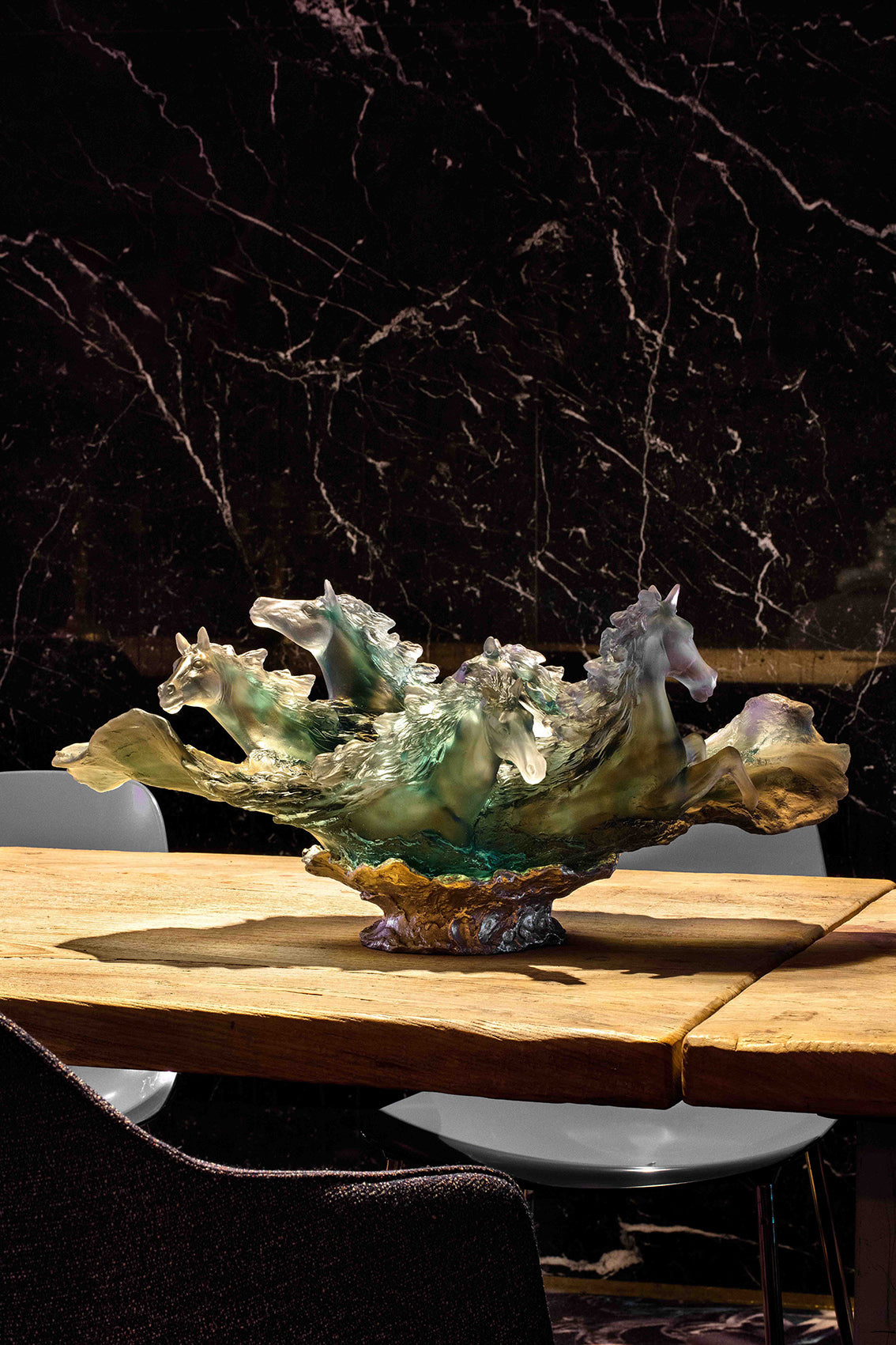 Cavalcade n’est pas simplement une collection : elle est un manifeste de la relation intime entre la matière et le mouvement, entre la main de l’artisan et la fougue de l’animal. Elle évoque les racines profondes d’une maison qui, depuis plus d’un siècle, explore les possibles du cristal avec audace, en dialogue constant avec les artistes et les formes du vivant. À travers elle, la Maison Daum ne capture pas seulement la beauté du cheval : elle en transmet la vérité. Car, comme le dit un vieux proverbe, l’air du paradis souffle entre les oreilles d’un cheval. C’est cet air que Cavalcade tente, avec grâce et lumière, de faire résonner dans nos intérieurs.