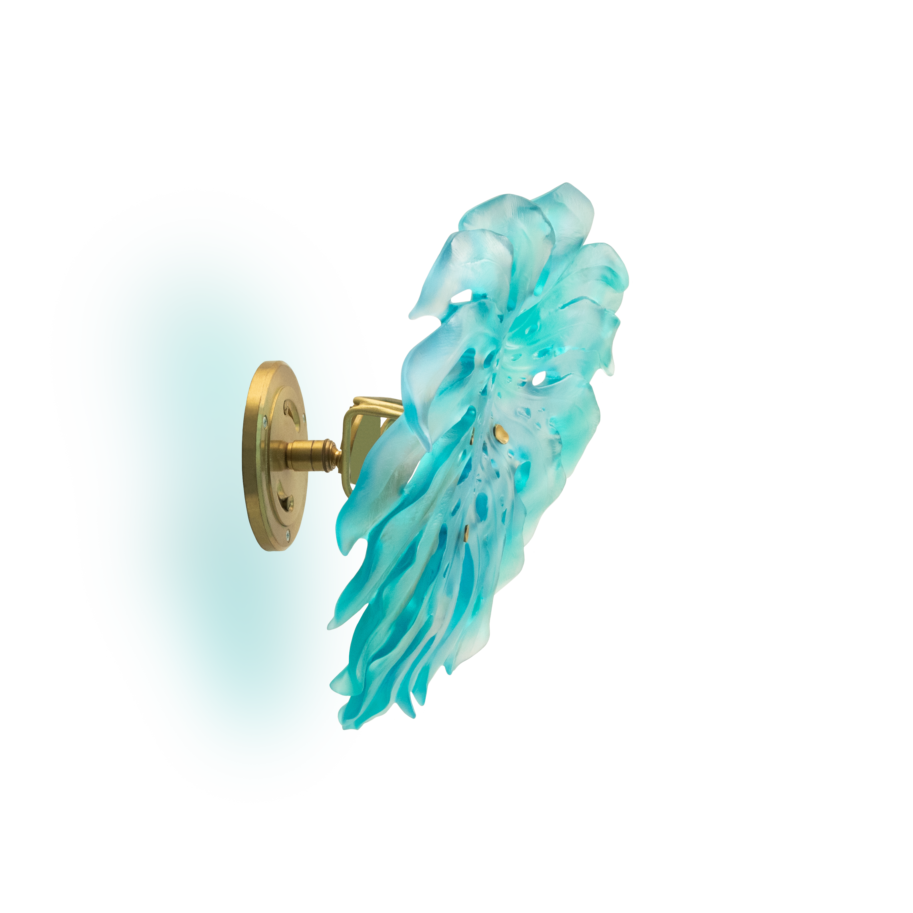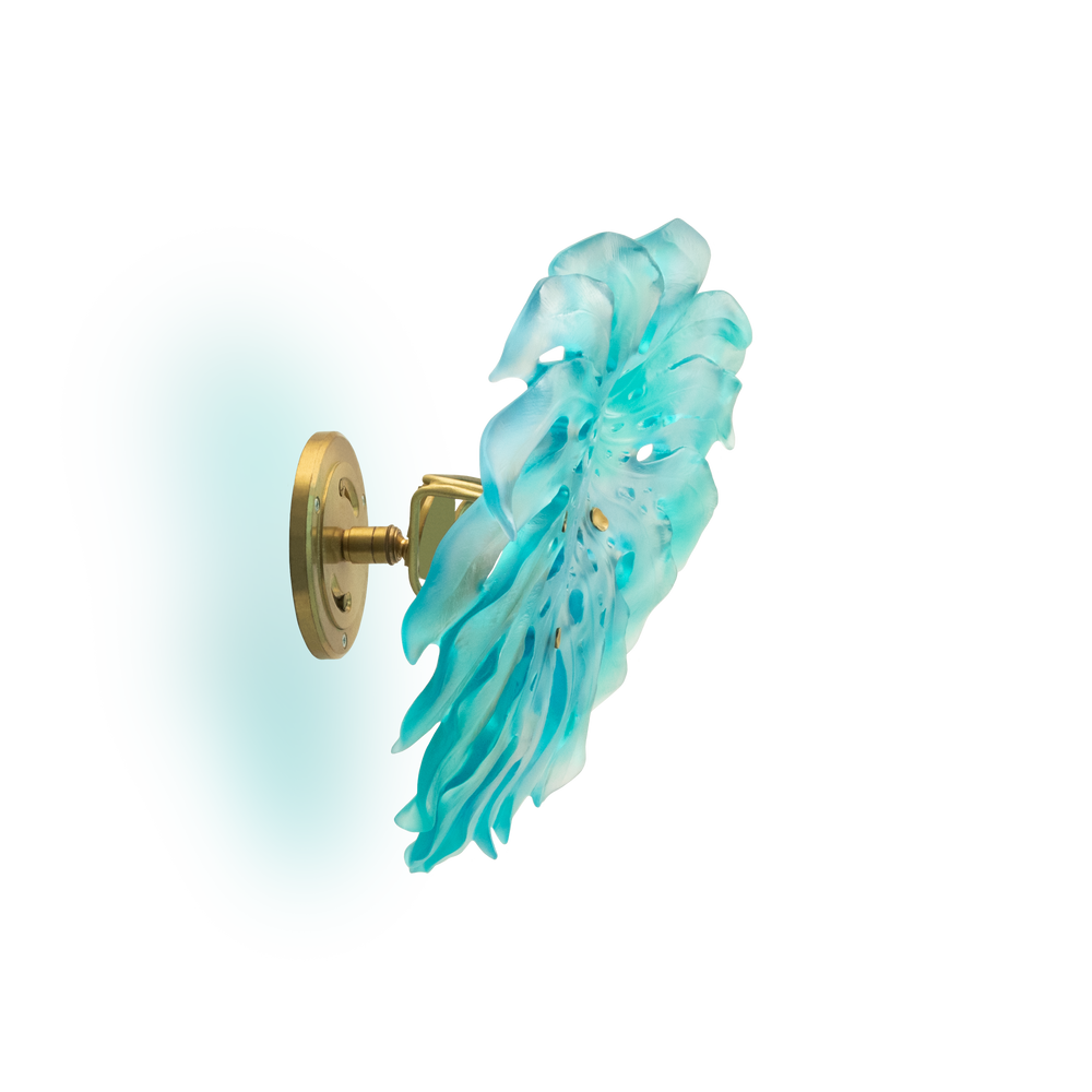 Déclinées en deux tailles, disponibles en blanc ou en vert intense, ces créations murales sont éditées en séries numérotées, témoins du savoir-faire artisanal de la Maison Daum. Les nervures délicates, le relief sculptural, les dégradés de couleurs et la translucidité du cristal composent un hommage poétique à la nature sauvage. Grâce à deux systèmes de fixation (longue ou courte), les feuilles Bornéo peuvent s’agencer librement sur les murs, en composition organique ou en pièce unique. Leur silhouette végétale, à la fois graphique et naturelle, transforme chaque espace en un tableau vivant. Cette collection incarne une nouvelle fois l’univers d’Emilio Robba, maître du végétal stylisé, et son dialogue avec la matière d’exception que Daum sublime depuis plus d’un siècle.