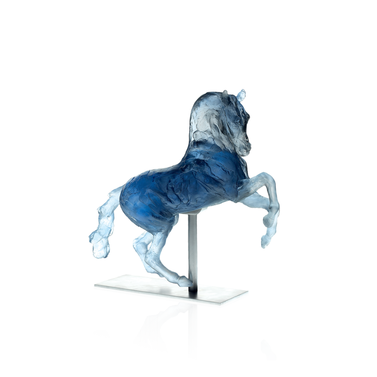 Depuis 2009, la collaboration entre Jean-Louis Sauvat, sculpteur et peintre passionné par l’univers équestre, et la Maison Daum donne naissance à une série de 4 œuvres puissantes, à la frontière du mouvement et de la matière. De cette rencontre entre le geste artistique libre et le raffinement du cristal émerge une œuvre singulière : Balthazar, hommage vibrant au cheval dans son état le plus sauvage et majestueux.