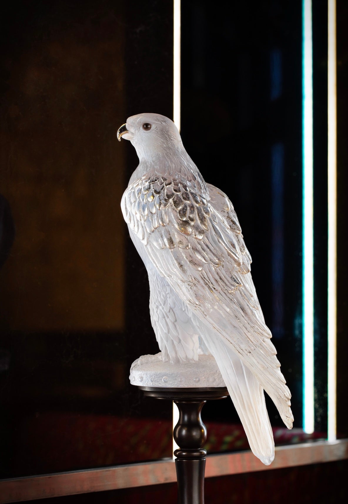 Une nouvelle oeuvre est née de la riche collaboration entre Madeleine van der Knoop et Daum : un faucon gerfaut inspiré de l’art de la fauconnerie. Ce faucon en cristal blanc aux ailes subtilement rehaussées de métal précieux fait écho à cet art très ancien inscrit au patrimoine culturel immatériel de l’humanité de l’UNESCO.