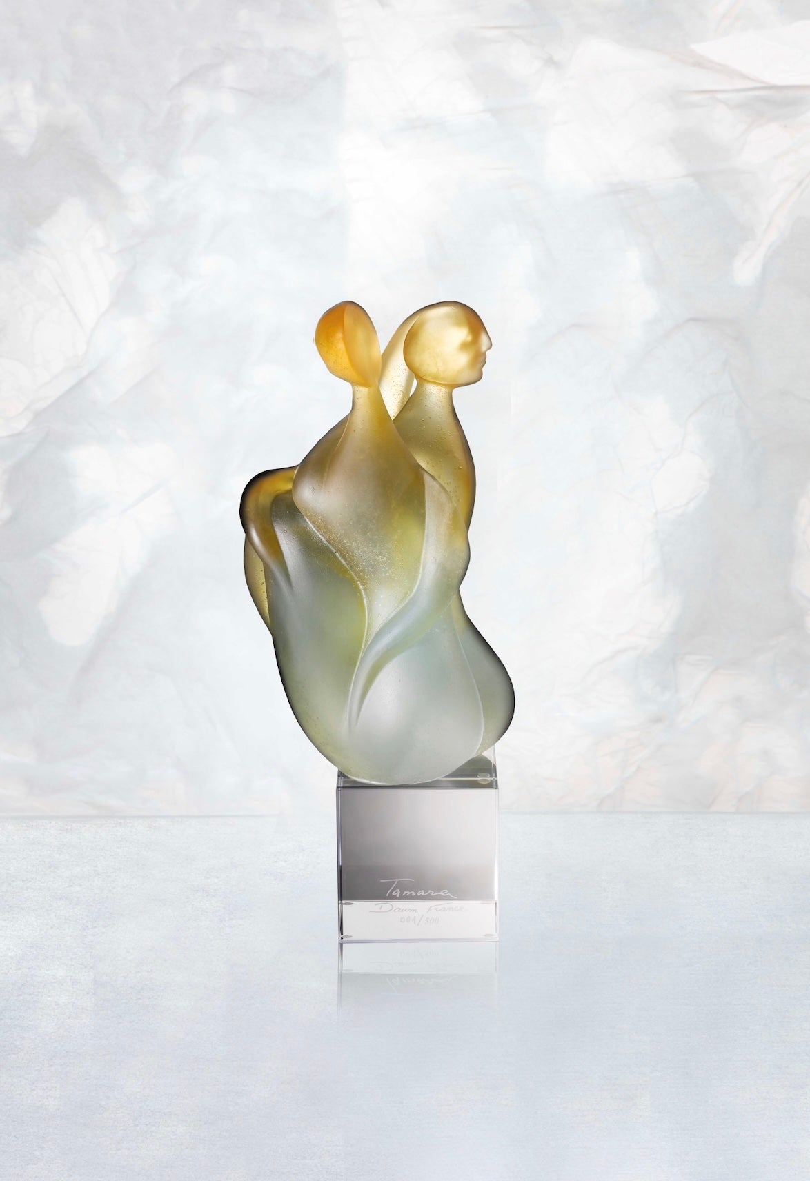 Depuis 2004, la Maison Daum collabore avec l’artiste et sculptrice géorgienne Tamara Kvesitadze pour donner vie à une trilogie de sculptures en cristal, où se mêlent poésie, sensualité et dualité. Passionnée par l’histoire de l’art, en particulier les périodes Art Nouveau et Art Déco, Kvesitadze insuffle à chacune de ses créations un souffle onirique et intemporel, où l’abstraction épouse la figure humaine.
