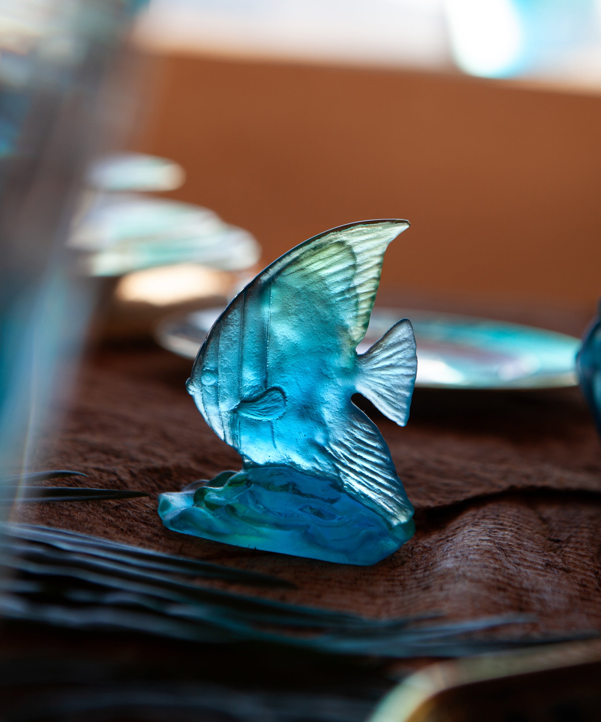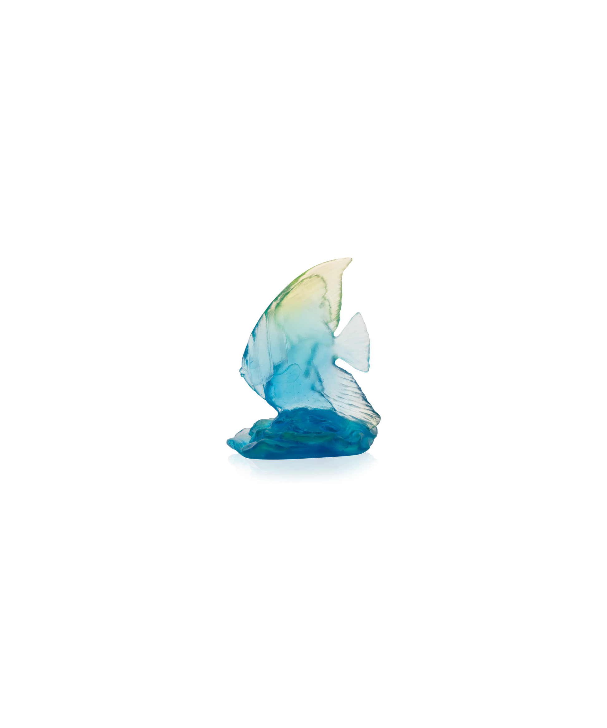 Inspirée de l'élégance des poissons platax, cette sculpture évoque un danseur sous-marin capturé en plein mouvement. Façonnée en pâte de verre, cette technique séculaire maîtrisée par Daum révèle un éclat singulier, mêlant transparences et colorations subtiles. Chaque sculpture devient ainsi un univers marin miniature, où la lumière naturelle joue avec les formes et les nuances. Cette création Daum, véritable ode à la nature, apporte une présence poétique et magnétique à votre espace, invitant à une contemplation tranquille du monde sous-marin.