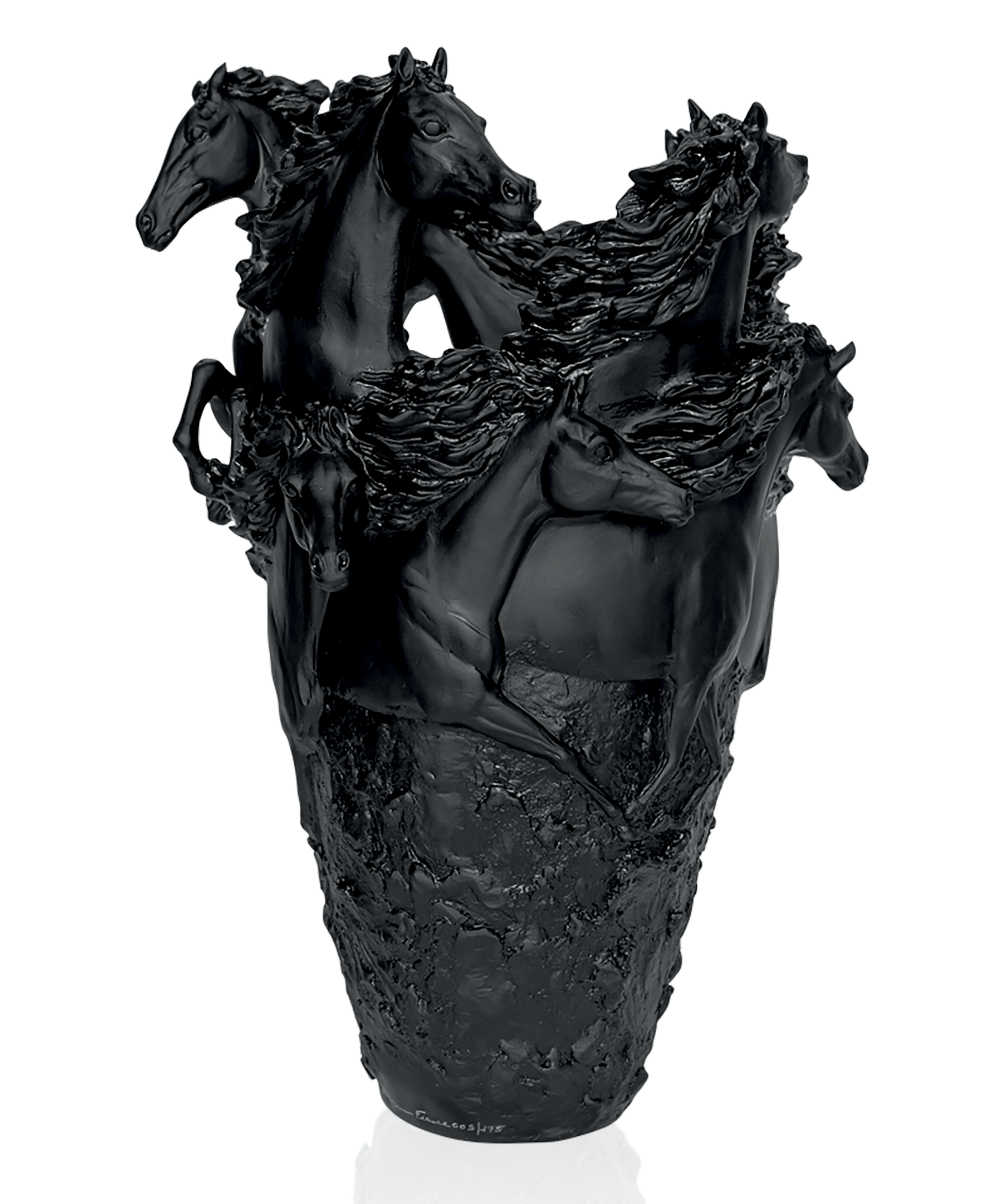 Inspiré de la silhouette majestueuse du cheval et de la profondeur du ciel nocturne, ce vase est une ode à la nature et à l'éternité. Réalisé en pâte de verre, une technique séculaire de Daum, le Vase Cheval Magnum Noir révèle un jeu de transparences colorées. Les nuances de noir captent et reflètent la lumière, créant des éclats qui évoquent un ciel étoilé. Sa forme généreuse et ses courbes gracieuses donnent vie au cristal, le transformant en une œuvre d'art vivante. Ce vase ne se contente pas de sublimer les fleurs, il invite à une contemplation profonde, une immersion dans l'obscurité étoilée de la nuit.