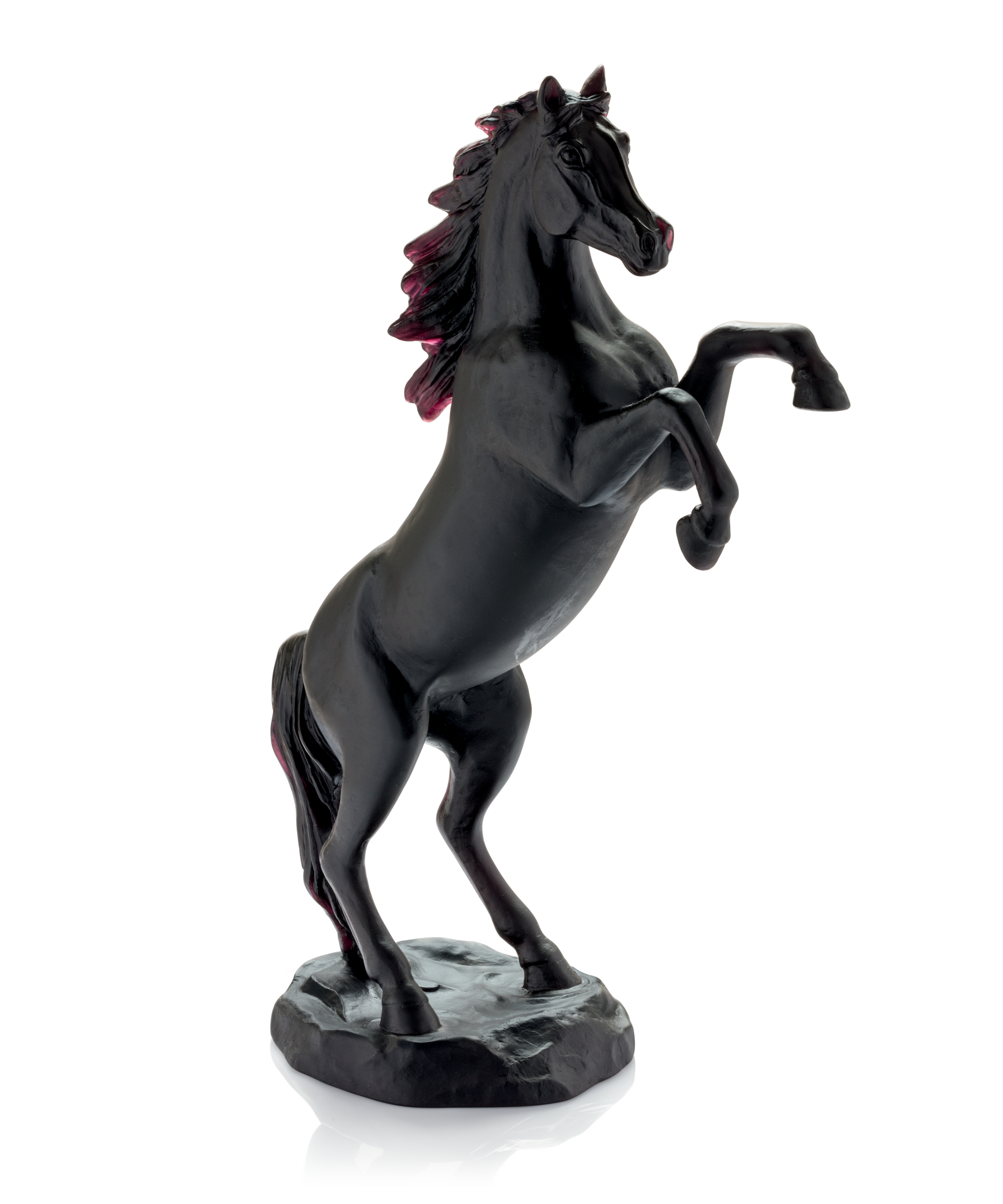 Inspirée de la fougue indomptée des chevaux Appaloosa, cette sculpture capture l'énergie brute de la nature. Façonnée en cristal par des maîtres artisans, elle se distingue par ses nuances subtiles de transparences colorées qui semblent donner vie à la matière. Chaque détail, de la crinière au galop à la puissance du mouvement, est rendu avec une précision saisissante grâce à une technique séculaire de pâte de verre. Cette sculpture imposante évoque une présence magnétique et dynamique, invitant à une contemplation sans fin de son mouvement éternel.
