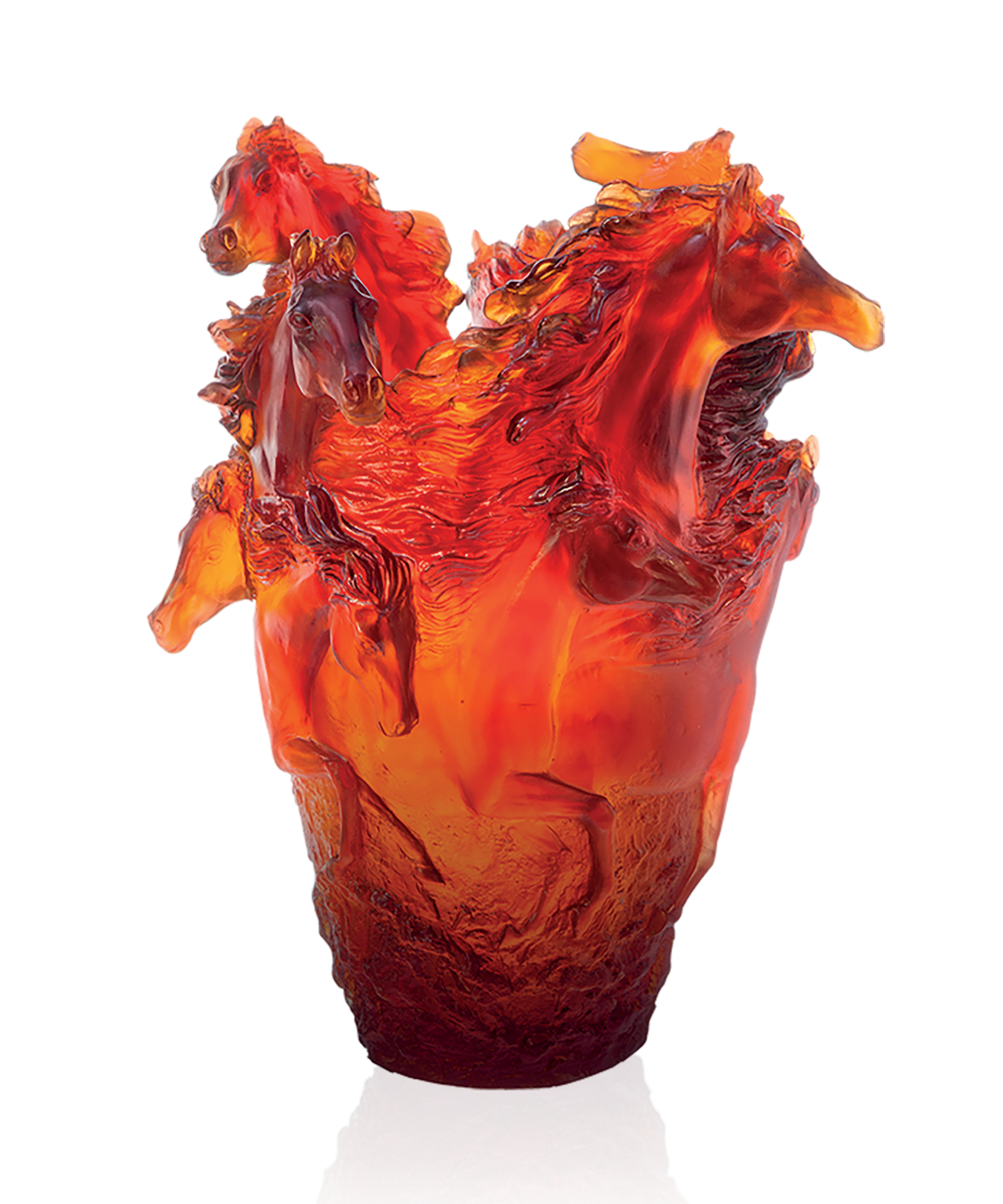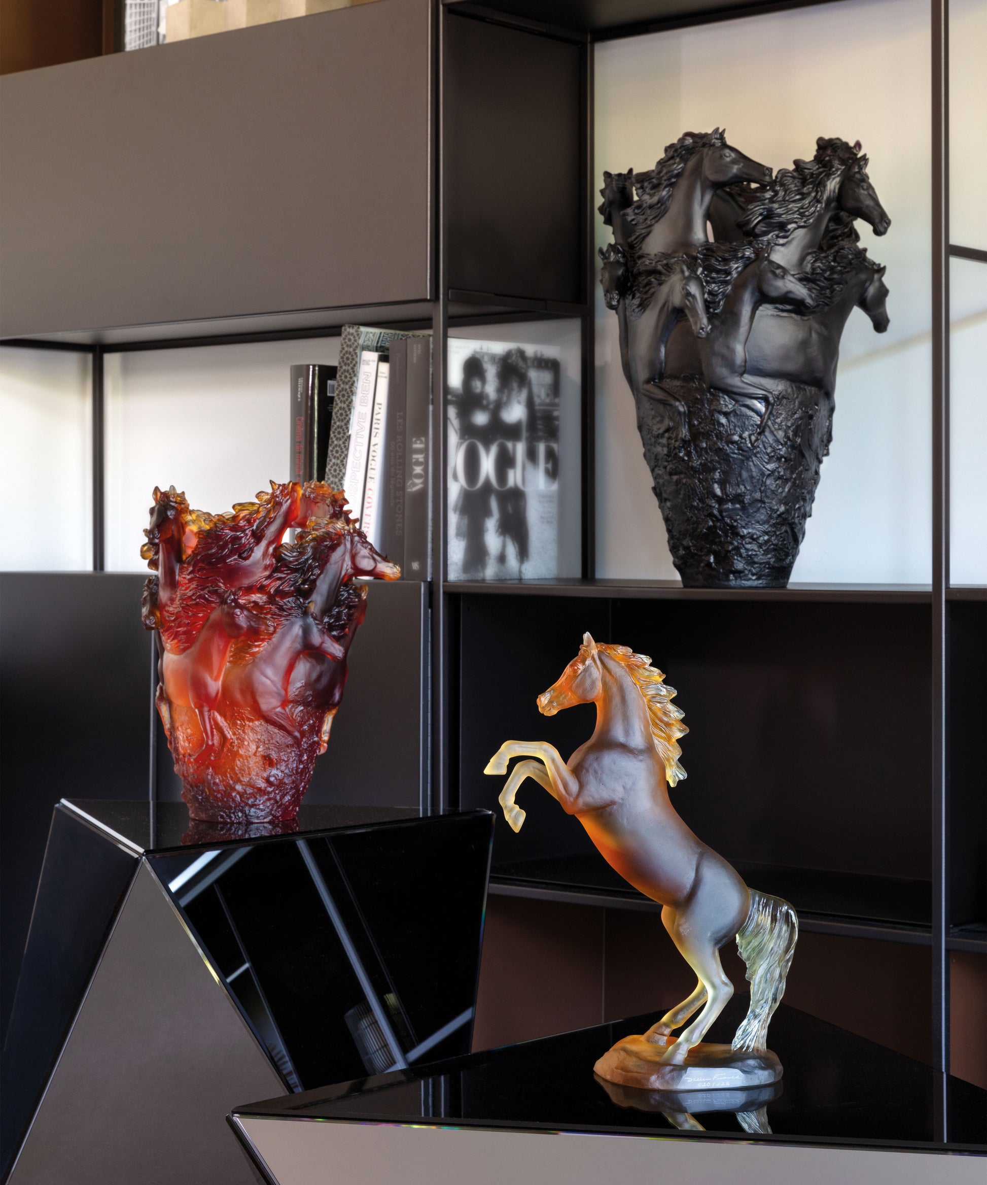 Dans l’élan exaltant d’un galop, la Maison Daum a saisi l’essence du cheval, cet animal à la fois majestueux et indomptable, devenu au fil des décennies une figure emblématique de son univers artistique. Depuis 2014, la collection Cavalcade rend hommage à cette puissance libre et élégante, en donnant naissance à une série d’œuvres façonnées dans l’éclat vibrant du cristal. Véritable déclaration d’amour au monde équestre, Cavalcade capte l’instant suspendu d’un mouvement, la tension d’un muscle, la légèreté d’une crinière dans le vent. Le cheval devient ici plus qu’un motif : il est mouvement incarné, symbole de noblesse, de liberté et de force intérieure.