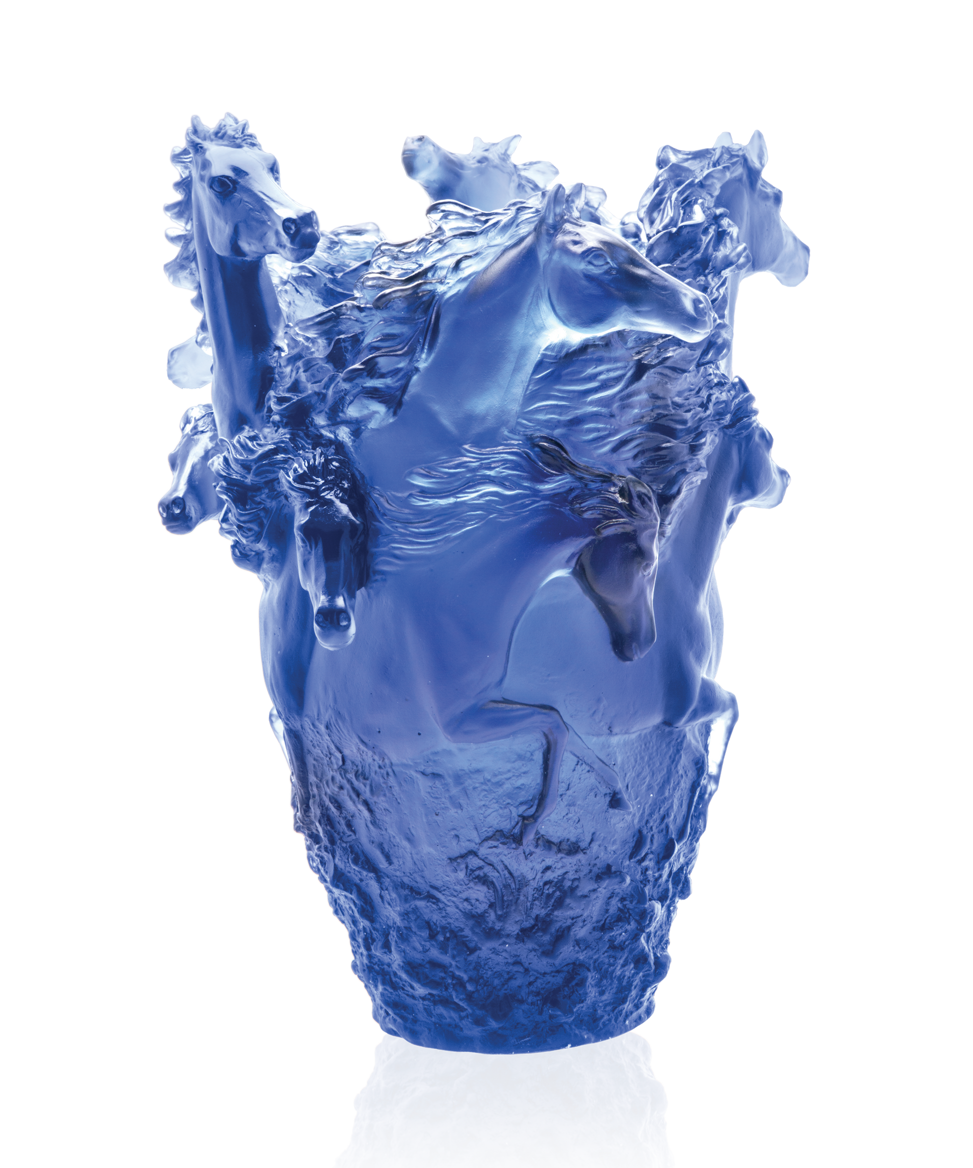 Inspiré de la majesté et de la grâce du cheval, ce vase bleu évoque une cavalcade sous un ciel étoilé. La pâte de verre, technique séculaire maîtrisée par Daum, donne vie à cette sculpture en cristal aux nuances de bleu profond, capturant et diffusant la lumière en transparences colorées. Les courbes gracieuses du vase et son col élancé ajoutent une touche d'élégance raffinée à n'importe quel espace. Véritable ode à la contemplation, ce vase Cheval bleu invite à un voyage poétique au cœur de l'univers Daum.
