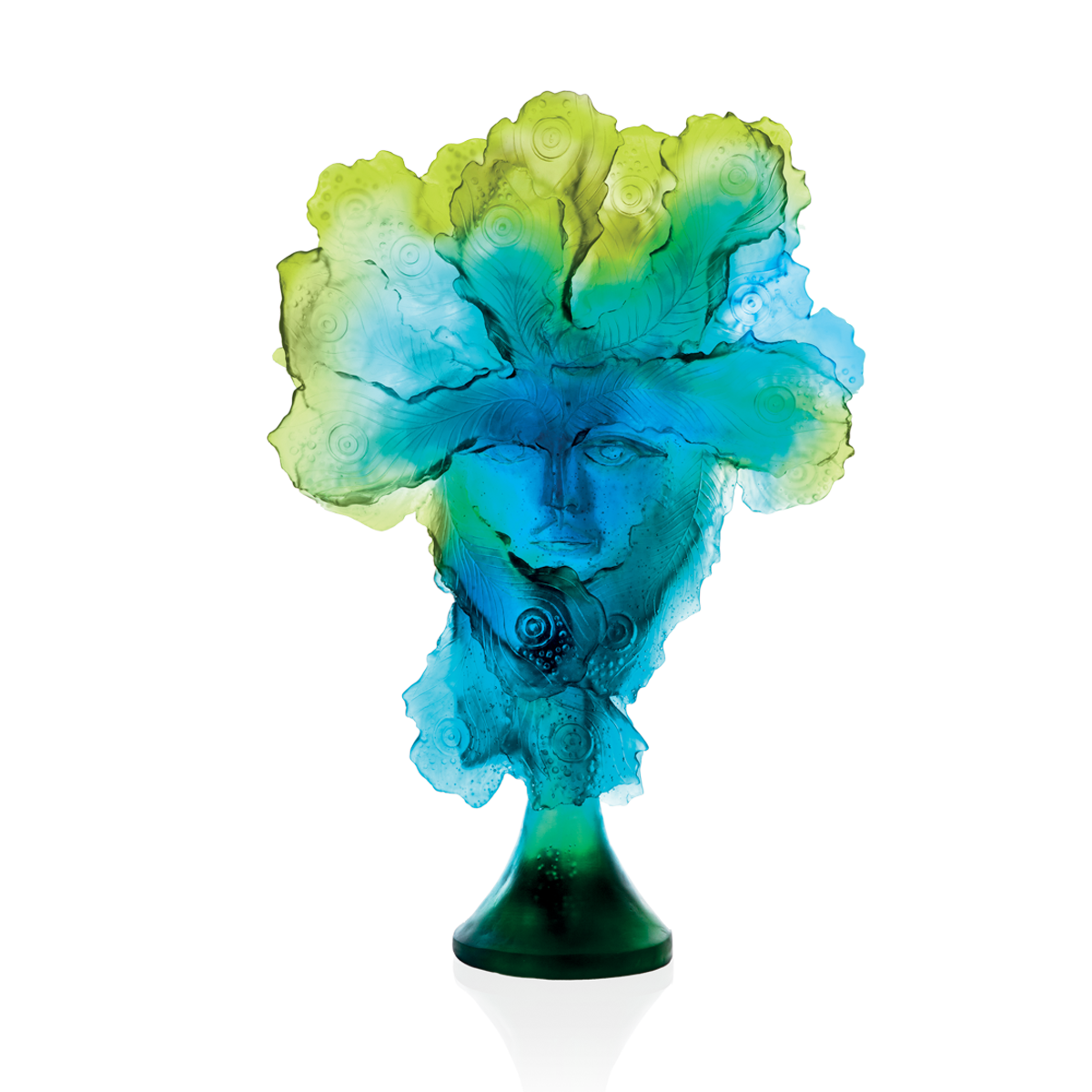 Artiste français de renommée internationale,LouisDerbréa marqué le monde de la sculpture par une œuvre empreinte de spiritualité et de force intérieure. Héritier des grands maîtres comme Rodin ou Maillol, il puise son inspiration dans les racines de l’humanité, dans la nature, et dans un humanisme universel.Depuis 2007, La Maison Daum et l’artiste cristallise cet art issu du courant figuratif humaniste. Encore aujourd’hui, le catalogue Daum édite une des trois œuvres d’art cristallisé dans la pâte de cristal, l’une de ses œuvres les plus emblématiques :La Terre bleue. Cette sculpture, présentée à Paris, au Japon et aux États-Unis, évoque la puissance de la terre nourricière, traduite ici dans une transparence cristalline teintée de bleu. Par ce travail, Daum transpose l’essence du bronze vers la délicatesse de la lumière, tout en conservant l’énergie brute de la forme.