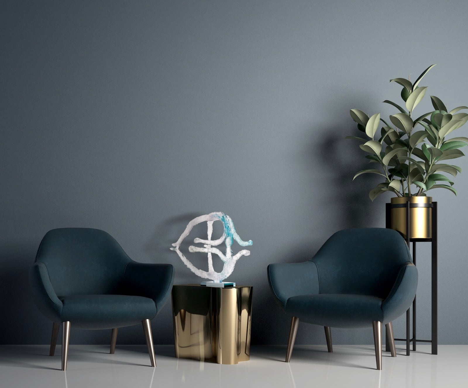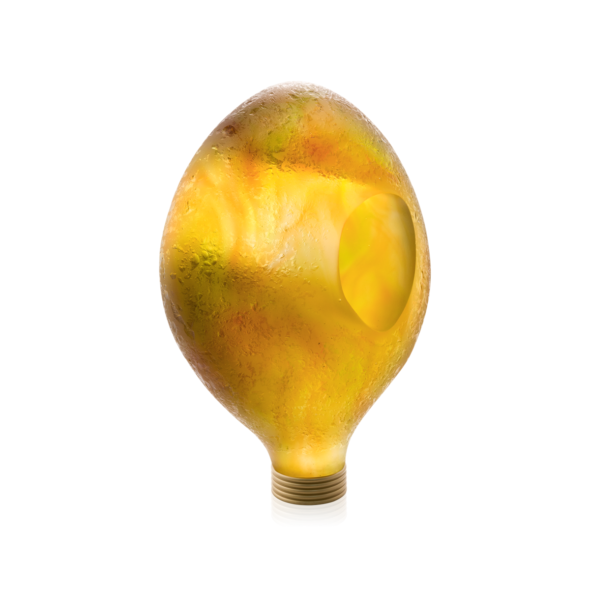 Avec Yeelen solaire et Yeelen azur, Daum et Gérald Vatrin saisissent l’instant magique où la matière capte la lumière. Chaque pièce, soufflée puis sculptée à la main, renferme des bulles, des flux, des souffles, comme autant de traces d’un mouvement figé. Les œuvres semblent animées d’un souffle intérieur, vibrant d’énergies chromatiques solaires ou aquatiques, posées sur un socle de laiton ou d’inox comme des talismans contemporains