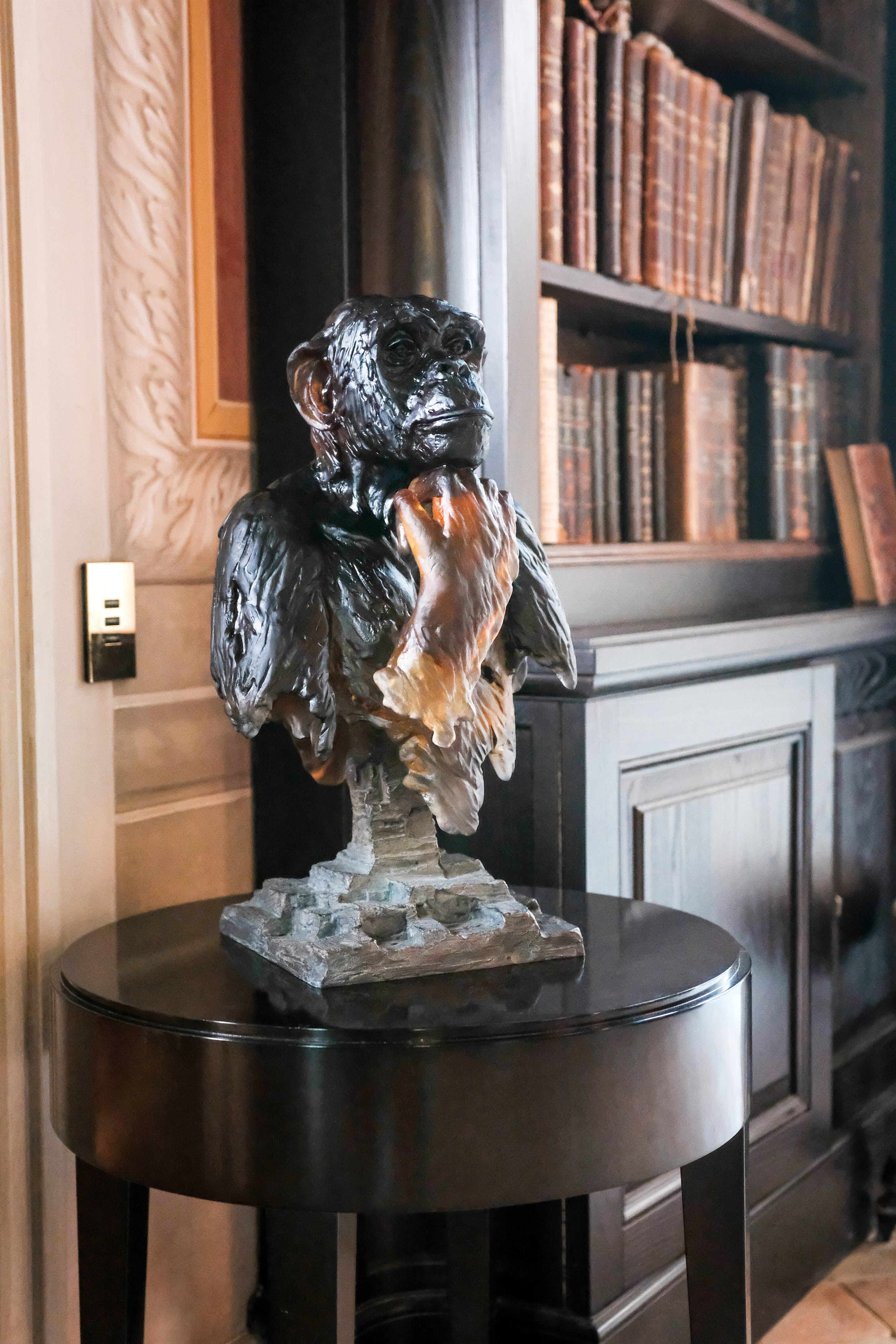 La rencontre entre Isabelle Carabantes et la Cristallerie Daum s’est faite avant tout autour de passions, celle de la sculpture et celle des animaux. L’extraordinaire beaut de la nature et du monde animal est le trait d’union entre Daum et l’artiste, et donne naissance a une sublime version du grand singe d’Isabelle Carabantes – Le Cogito. Certaines œuvres de l’artiste font écho a la lecture d’ouvrages scientifiques ou philosophiques qui apporte un nouvel éclairage sur le monde animal. Ils confirment qu’ils sont doués d’une palette de sentiments et d’une intelligence a l’image des hommes. C’est le cas du Cogito, qui n’est pas celui de Descartes, mais qui est né de la lecture d’un livre relatif aux travaux sur la métacognition, c’est-a-dire l’étude du savoir sur le savoir, réalisés sur les grands singes.