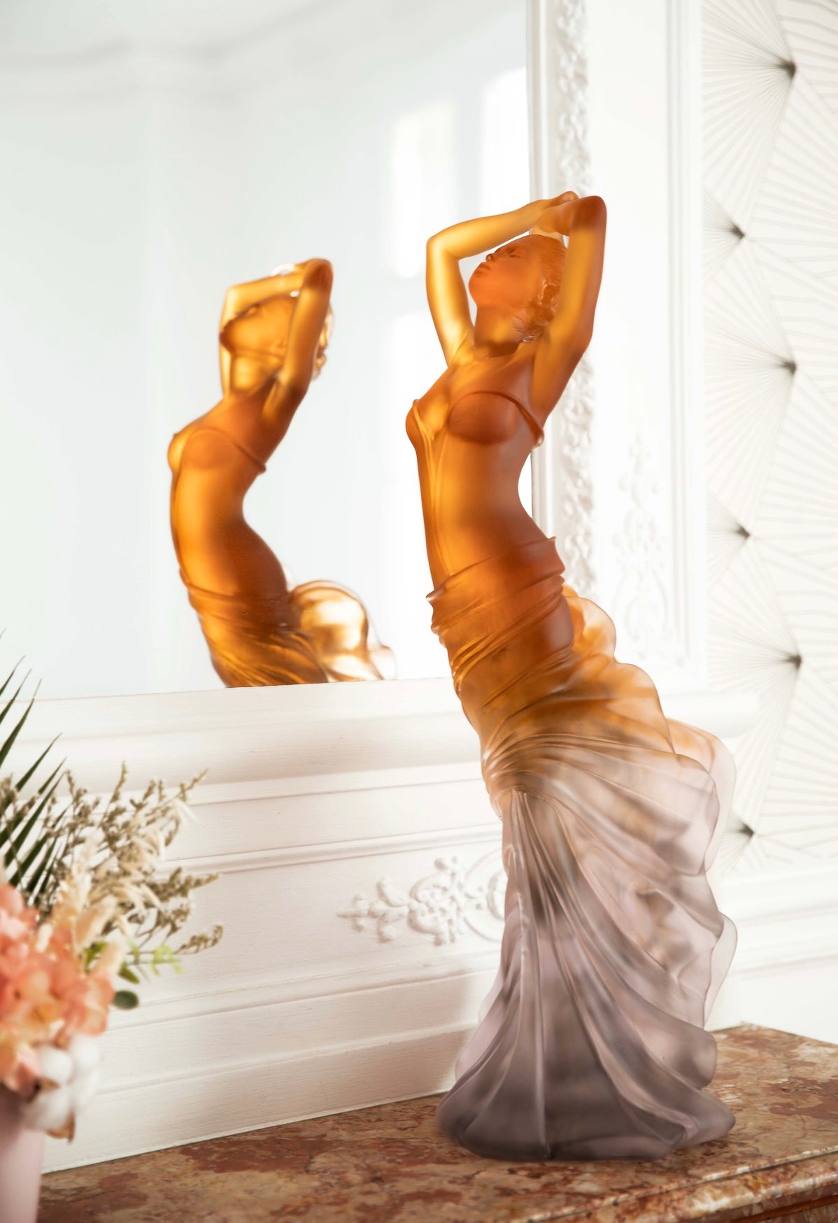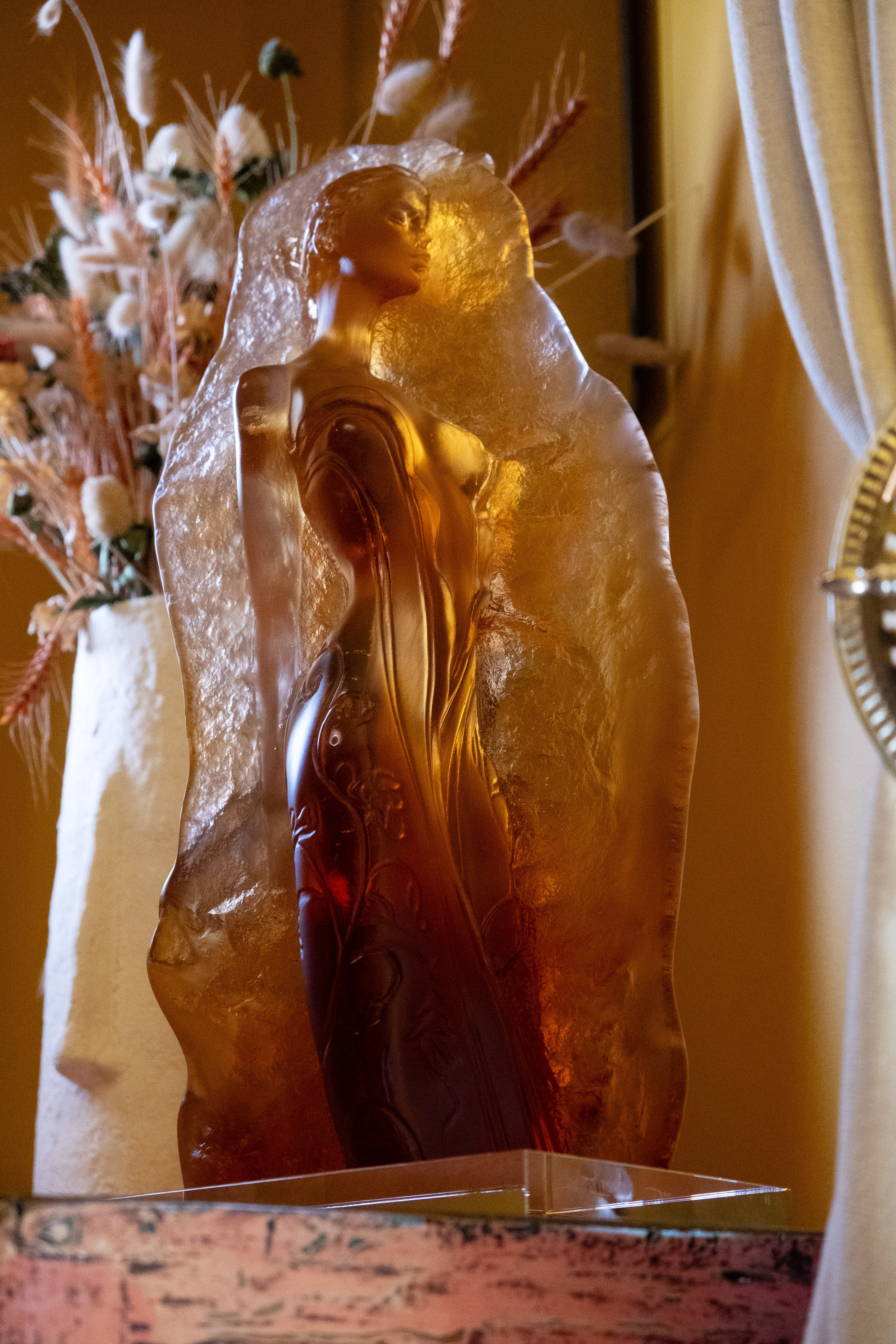 Évoquant la beauté intemporelle de la femme, 'Penelope' s'inspire de la grâce et de l'élégance naturelles. Dans un ballet de lumières et de transparences, cette sculpture est façonnée avec le savoir-faire séculaire de Daum, en cristal ambre, éclatant de vie. Chaque détail de cette œuvre d'art révèle une maîtrise artisanale exceptionnelle, des courbes délicates aux nuances subtiles de couleur. 'Penelope' transforme votre espace en un jardin de contemplation, où chaque regard sur la sculpture révèle une nouvelle facette de sa beauté lumineuse.