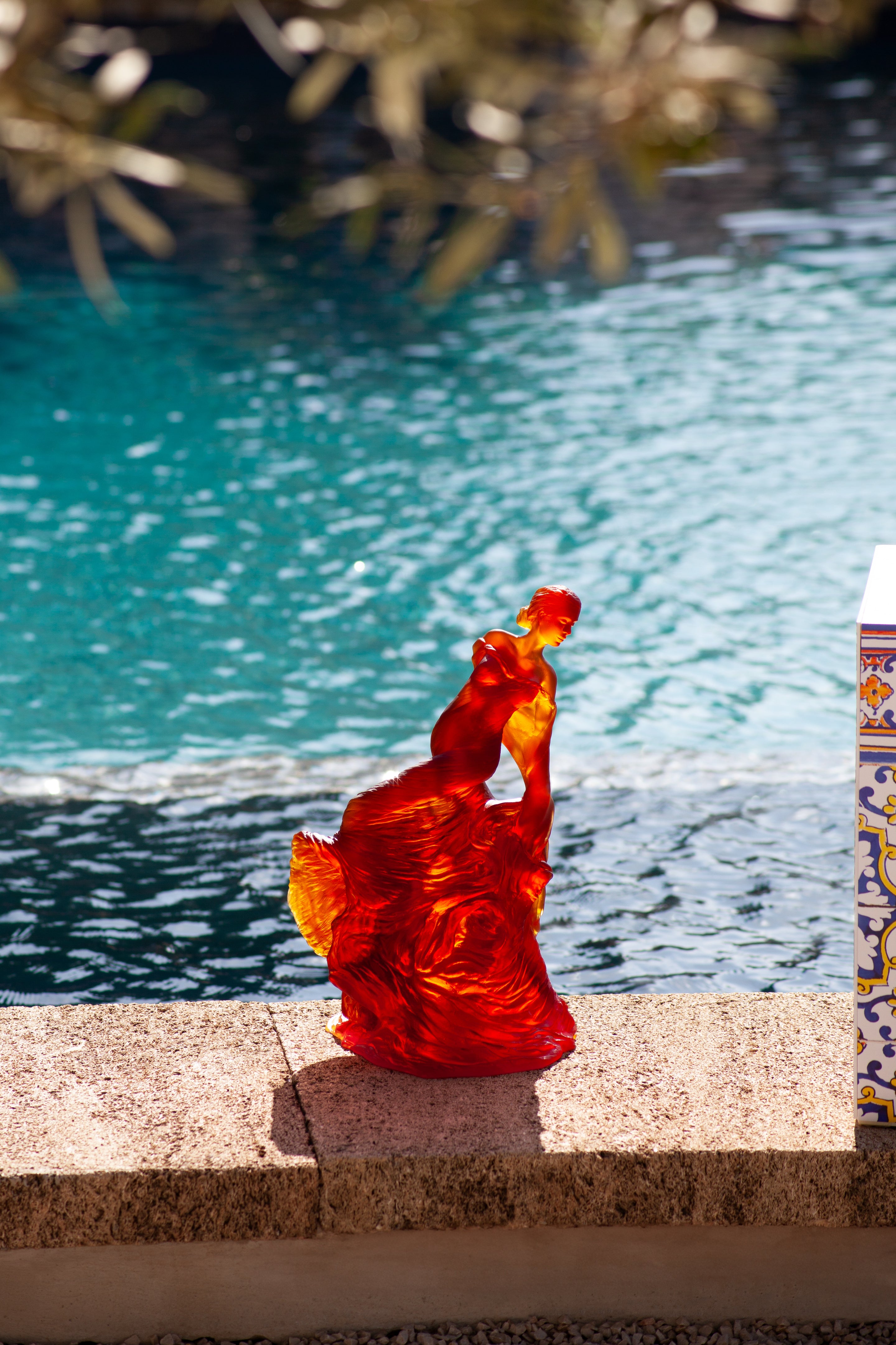 Dans cette première œuvre en pâte de cristal, l’artiste expérimente une nouvelle matière où la transparence et la vibration chromatique amplifient la légèreté de son geste. Les courbes délicates de la robe, la tension des drapés, l’élan suspendu du bras : tout ici évoque la musique invisible qui guide Paloma. La matière capte la lumière comme le tissu capte le vent, révélant la danse intérieure de cette muse éternelle.