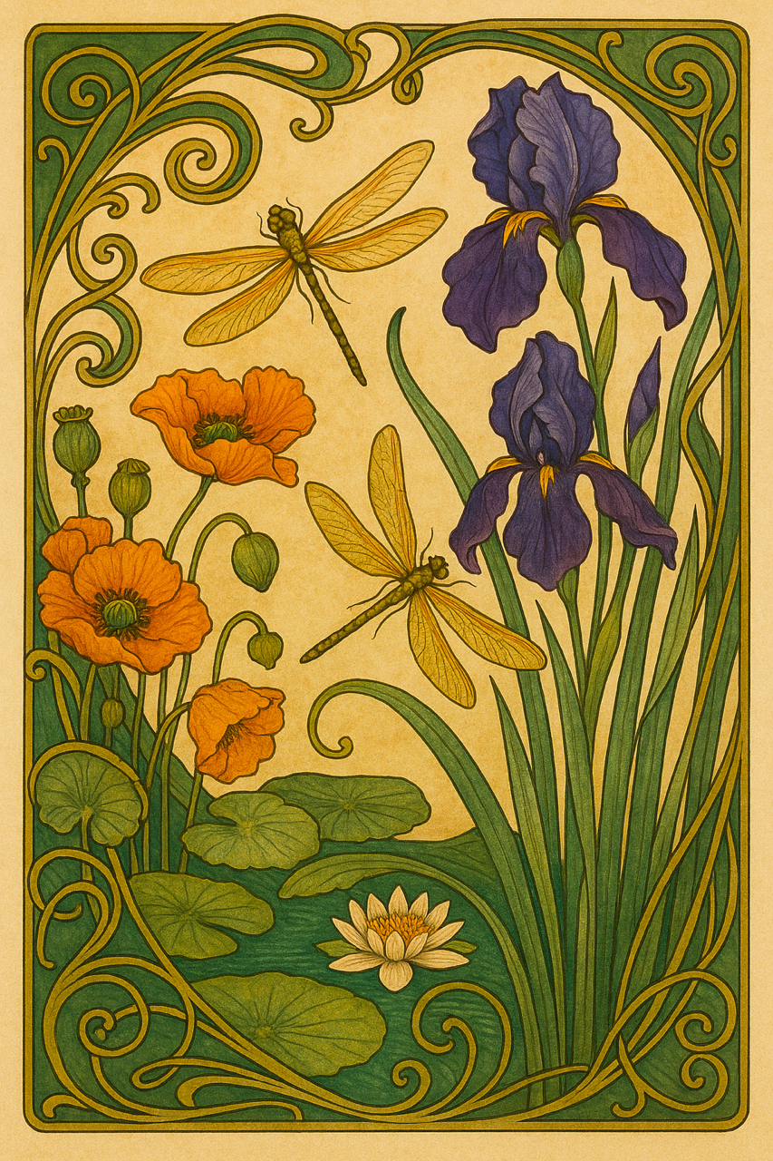 Ce mouvement artistique mondial, devenu incontournable, puise son inspiration dans la nature et ses courbes harmonieuses, pleines de grâce et d’arabesques. La faune et la flore reprennent le dessus sur les formes austères héritées de l’ère industrielle, insufflant un souffle nouveau à l’art qui les célèbre avec éclat. La diversité végétale devient une source inépuisable d’inspiration : plantes des marais comme les nénuphars, grands arbres tels que les aulnes, bouleaux ou chênes, fleurs des sous-bois comme le lys martagon, l’ancolie ou le muguet, sans oublier les plantes de jardin. Toutes ces espèces nourrissent l’imaginaire de l’époque. Les Arts Décoratifs sont mis à l’honneur dans ce retour à la nature, qui trouve également un écho dans la découverte de l’art japonais. L’Art Nouveau fusionne les univers floral et végétal, tout en respectant les avancées scientifiques. Ses techniques et ses décors se révèlent inventifs et se diversifient tout au long de l’âge d’or du mouvement. À l’international, ce courant prend racine en Angleterre, au sein du mouvement Arts & Crafts des années 1860. Il naît d’un besoin de revaloriser l’artisanat et le travail ouvrier britannique, ainsi que d’une volonté de créer des objets utilitaires dotés d’une véritable dimension artistique.