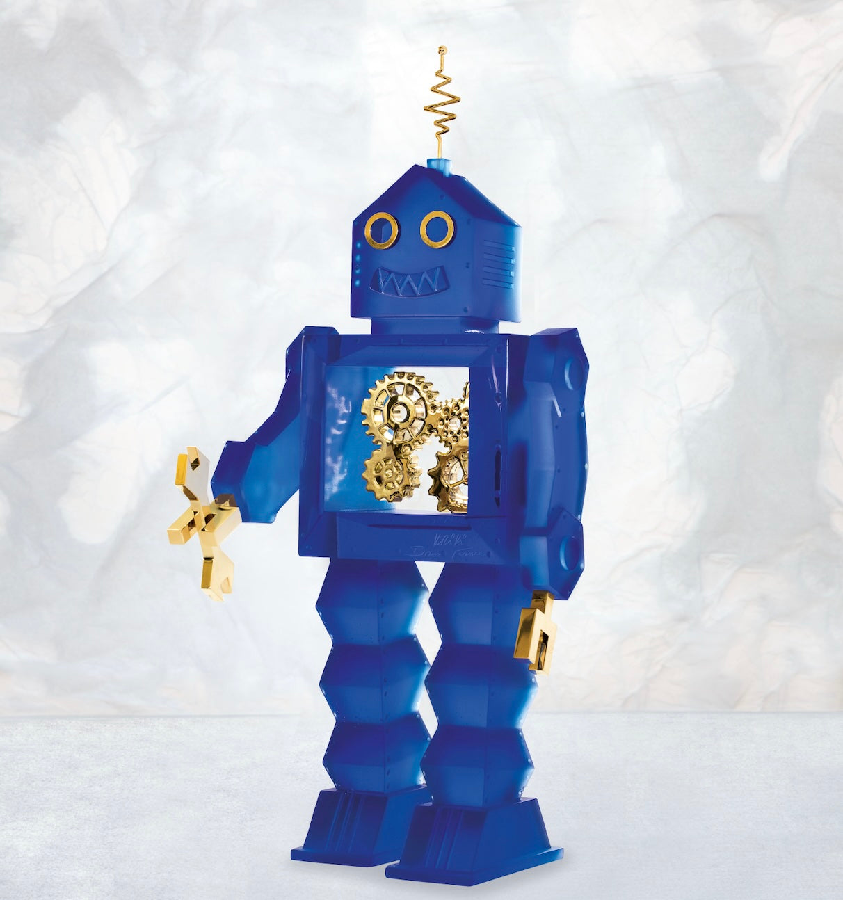 Édité en seulement 99 exemplaires, ce robot bleu intense, habité par un mécanisme doré, devient un manifeste artistique célébrant la rencontre entre la créativité urbaine et l’excellence artisanale française. Par cette création,Krikiet Daum signent un dialogue unique entre modernité et tradition, et invitent collectionneurs et amateurs d’art à découvrir une icône de la peinture contemporaine sous un nouveau jour, éclatant de lumière.