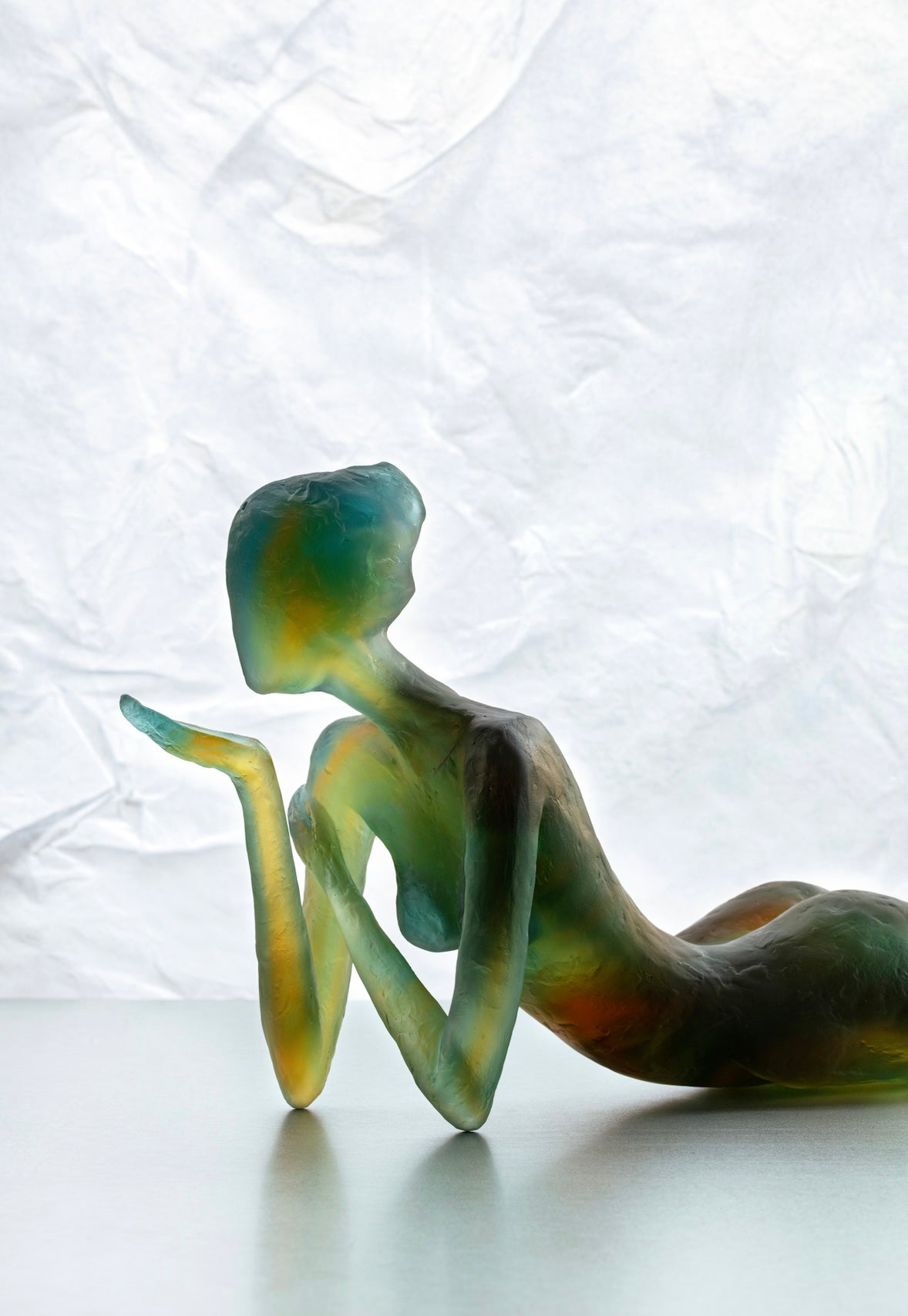 Artiste contemporaine s’inscrivant dans un courant figuratif sensible et intimiste, Sylvie Mangaud sublime l’émotion et le mouvement en capturant des instants d’une rare délicatesse. Ses créations se distinguent par la pureté des lignes, la délicatesse des postures et une sensibilité qui évoque la douceur et la liberté. Chaque sculpture révèle un instant suspendu, qu’il s’agisse d’une silhouette alanguie, d’une étreinte amoureuse ou d’une méditation silencieuse. La palette de couleurs nuancées de la pâte de cristal renforce la poésie de ces pièces, révélant la lumière et les ombres pour sublimer chaque courbe.