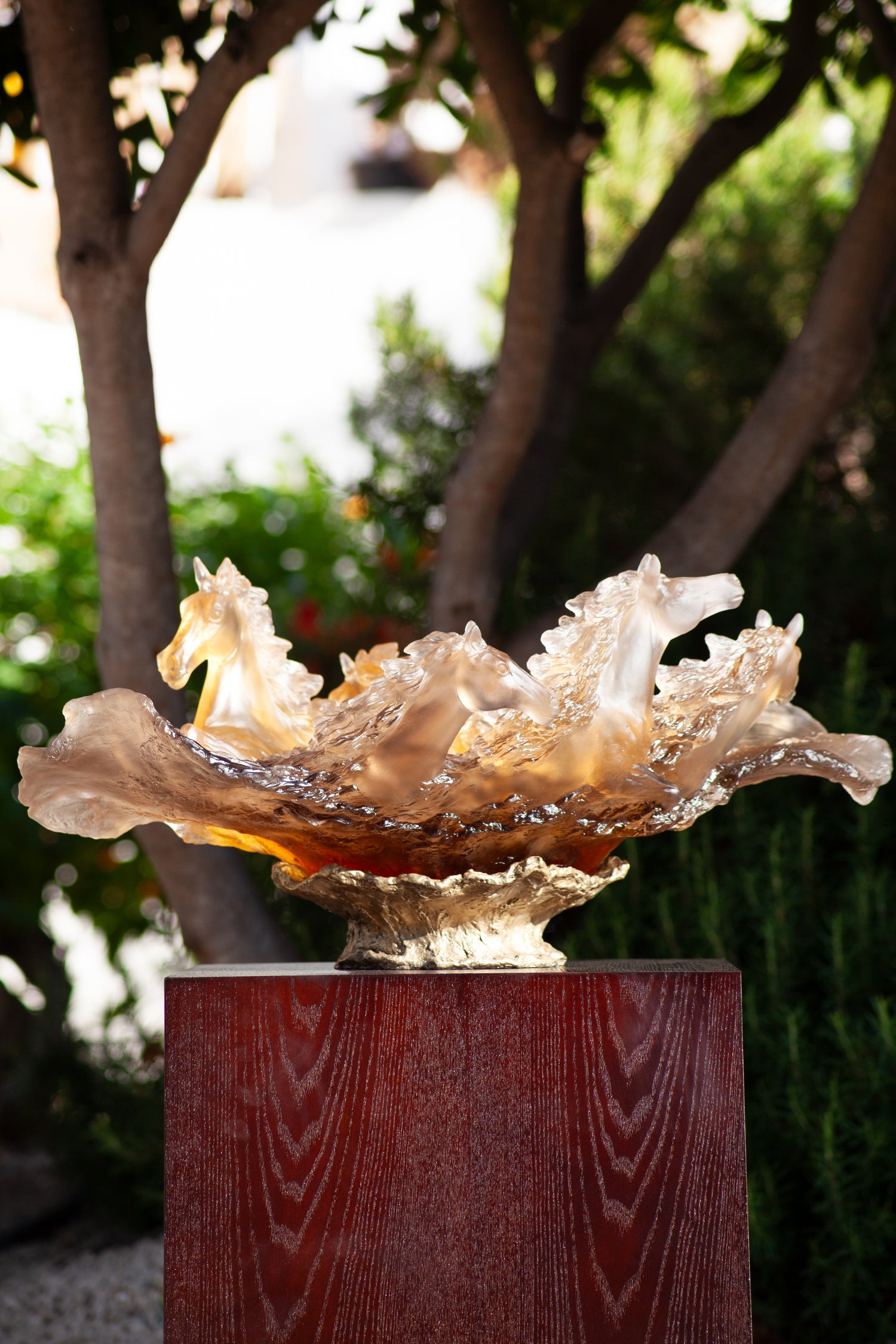 une ode au vivant portée par la lumière . Cavalcade n’est pas simplement une collection : elle est un manifeste de la relation intime entre la matière et le mouvement, entre la main de l’artisan et la fougue de l’animal. Elle évoque les racines profondes d’une maison qui, depuis plus d’un siècle, explore les possibles du cristal avec audace, en dialogue constant avec les artistes et les formes du vivant. À travers elle, la Maison Daum ne capture pas seulement la beauté du cheval : elle en transmet la vérité. Car, comme le dit un vieux proverbe, l’air du paradis souffle entre les oreilles d’un cheval. C’est cet air que Cavalcade tente, avec grâce et lumière, de faire résonner dans nos intérieurs.