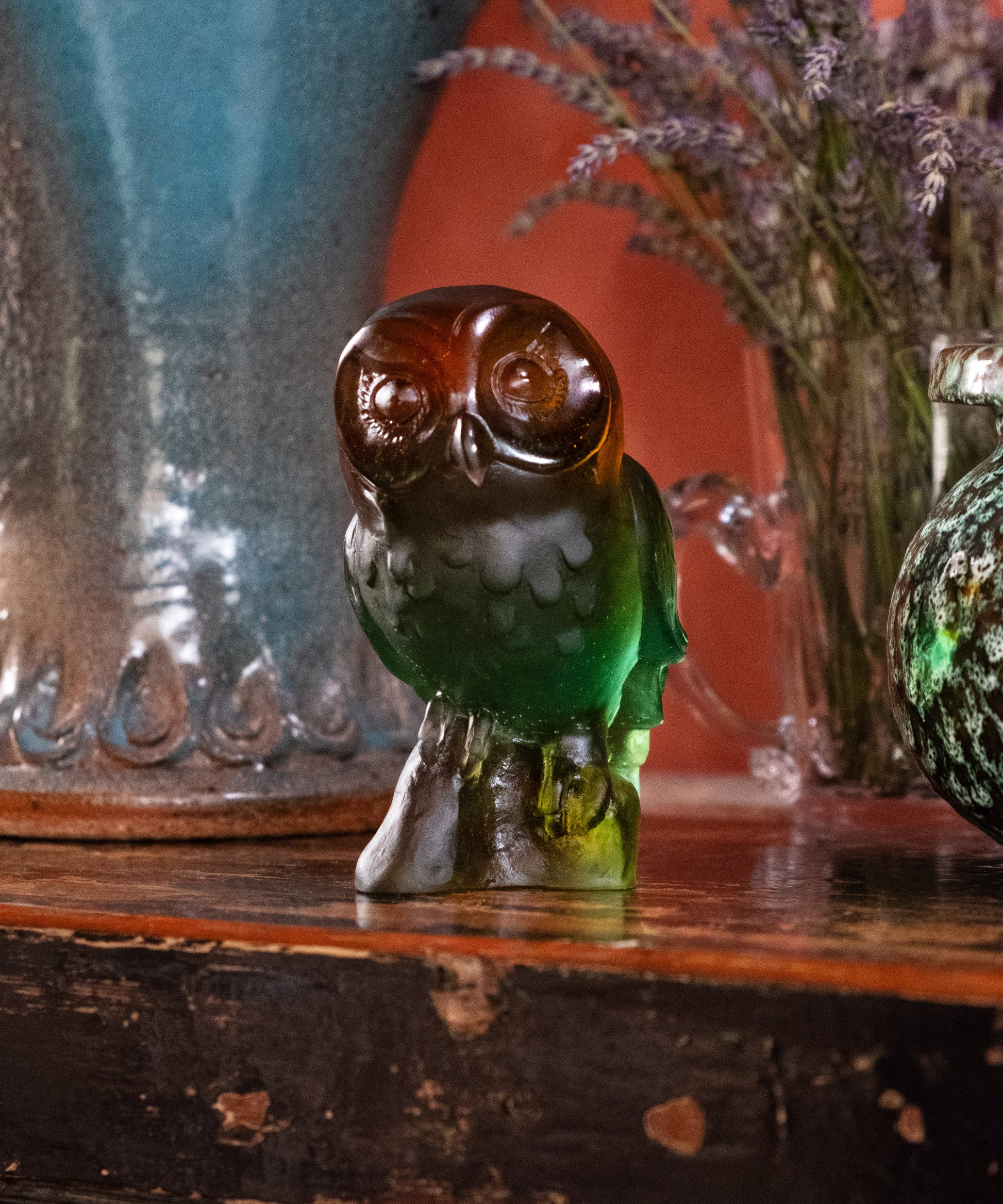 Nous vous recommandons d’entretenir vos pièces en cristal Daum avec un chiffon doux et sec, du type microfibre, sans adjonction d’eau ni surtout de produit lessiviel ou d’entretien. Si la pièce comporte des parties en bronze ou autre métal, il est préférable de ne pas les mouiller, et de simplement les dépoussiérer puis de lustrer au chiffon doux.