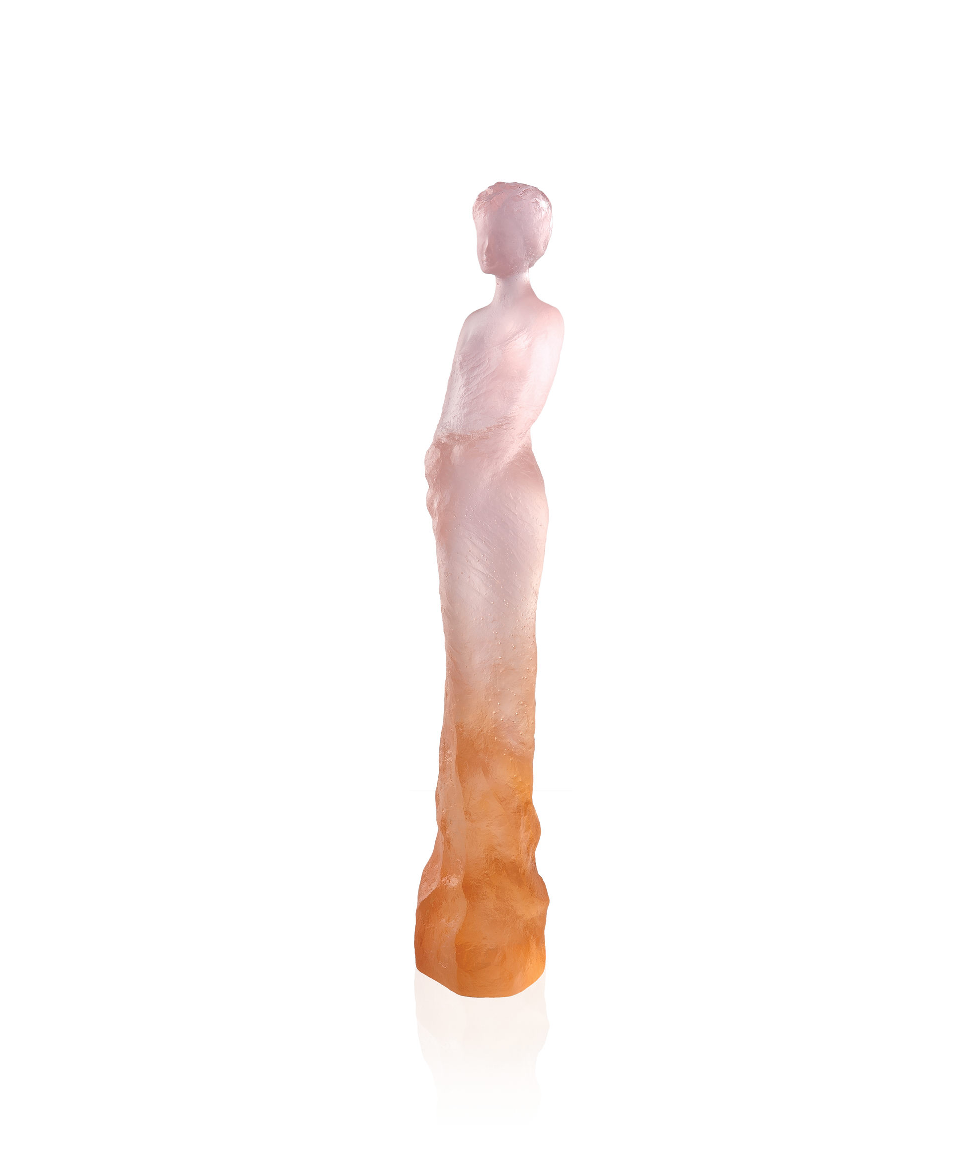 Inspirée par la délicatesse des jardins en fleurs, 'Eugenie rose jaune' est une célébration de la féminité. Cette sculpture, créée par Jean-Philippe Richard, utilise la technique séculaire de la pâte de verre pour donner vie à une figure féminine élancée, dont les transparences colorées captent les éclats de lumière. Les nuances florales qui dansent sur sa surface sont un hommage à la nature et à sa beauté éphémère. Placée dans votre espace, 'Eugenie rose jaune' invite à la contemplation et à la découverte de l'émotion captée dans son mouvement éternel.