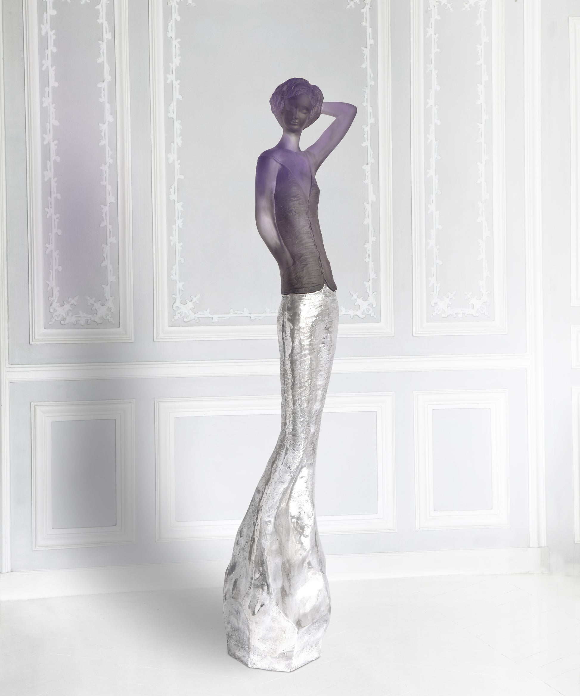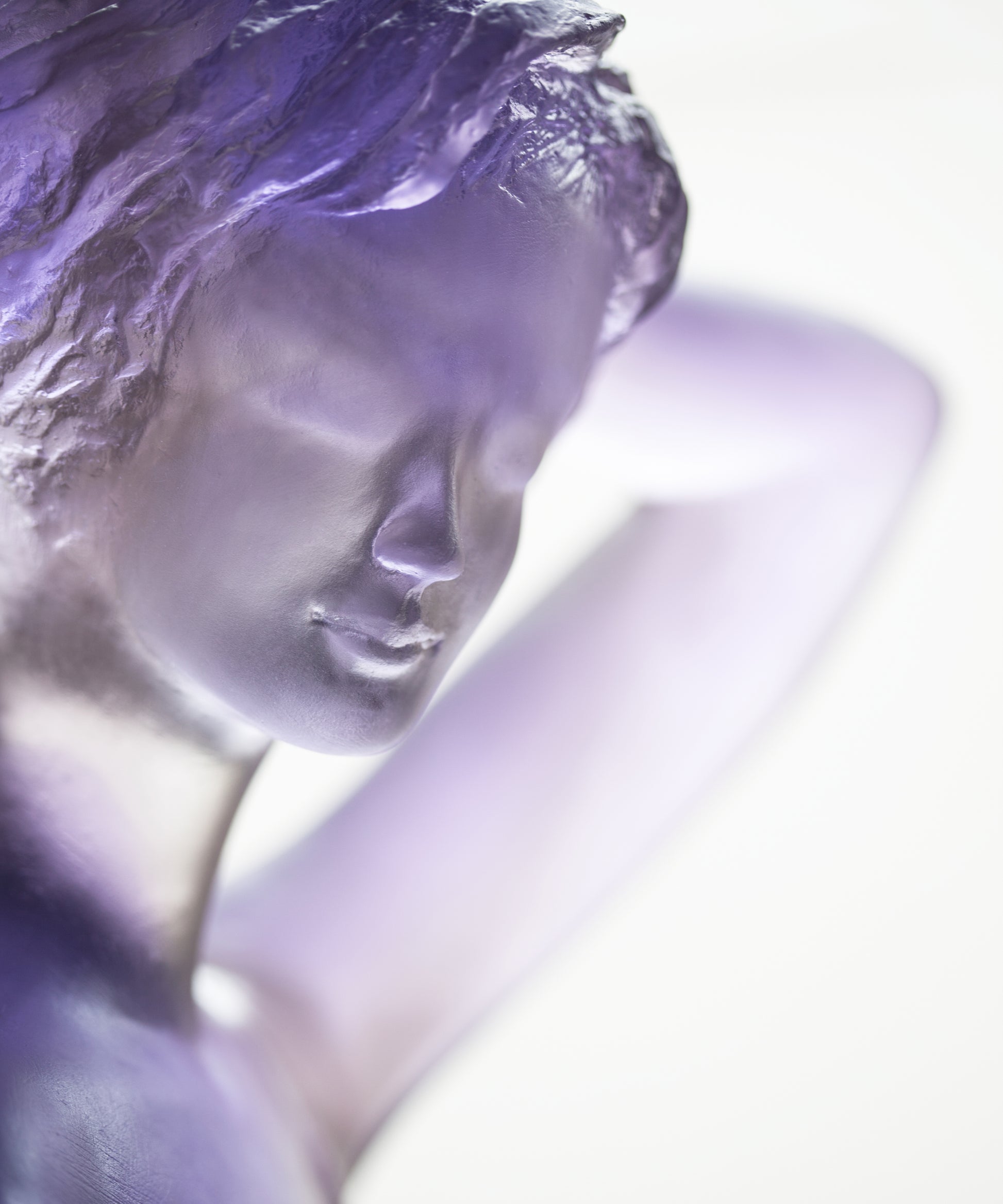 Inès Grise et violette de Jean-Philippe Richard 75ex, issu de la collection Daum, évoque la transparence comme langage universel. Réalisé en pâte de verre, il révèle l’harmonie entre lumière et matière et la beauté pure du cristal. Ses jeux de lumière et de transparence subliment la maîtrise du geste artisanal, créant une aura fascinante. Chaque détail témoigne d’un savoir-faire d’exception et d’une passion pour la création. Une œuvre poétique et intemporelle signée Daum, où l’art et la nature s’unissent.