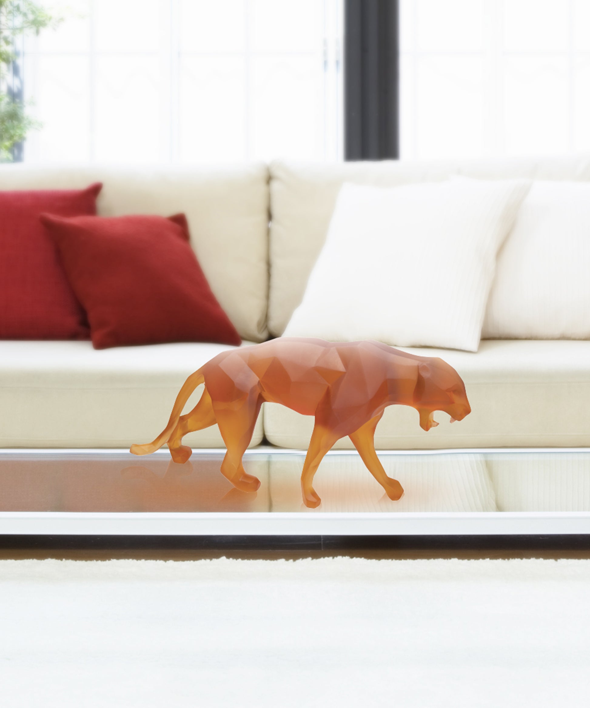 Sculpture Daum 'Wild Panther orange' de Richard Orlinski, expression saisissante en cristal orange.